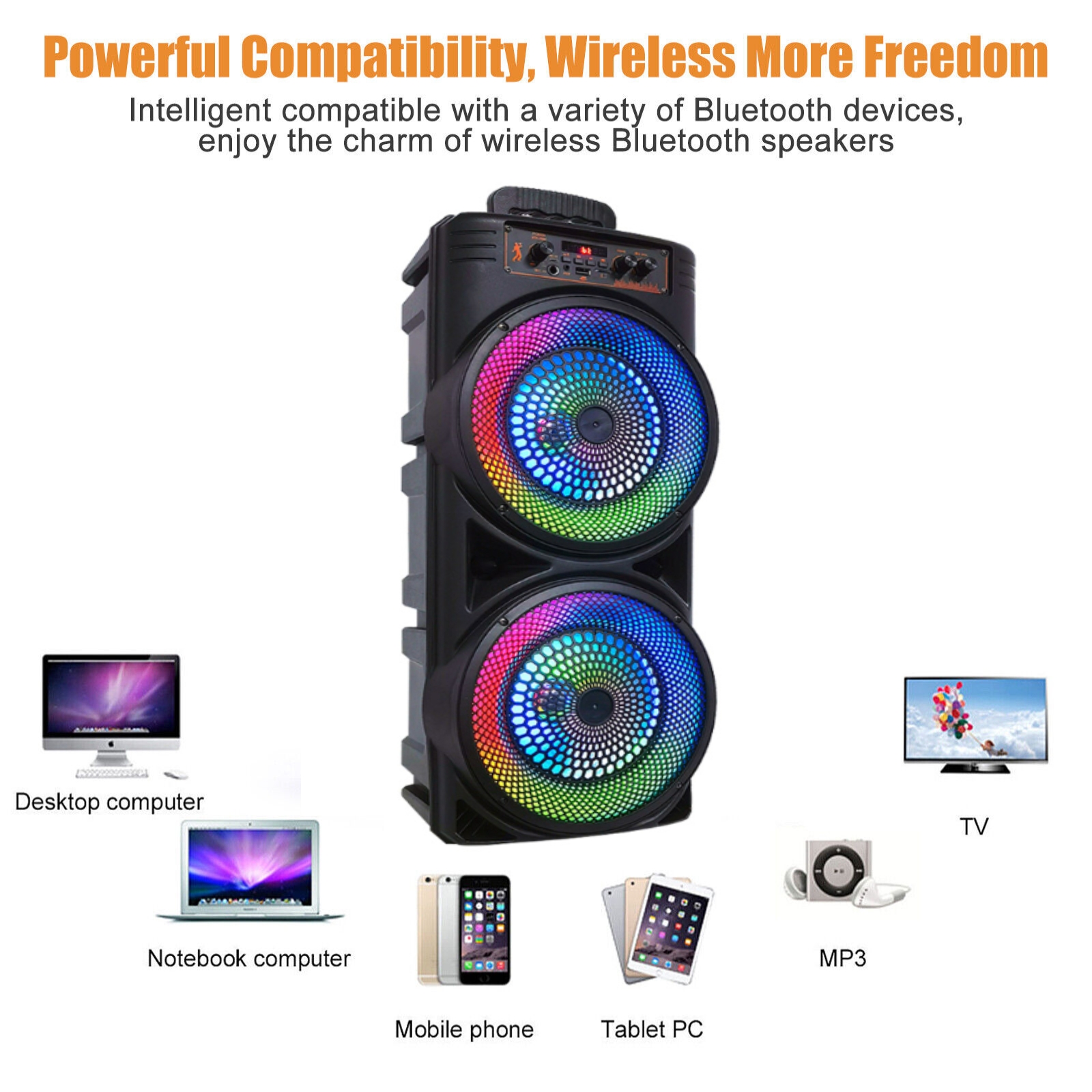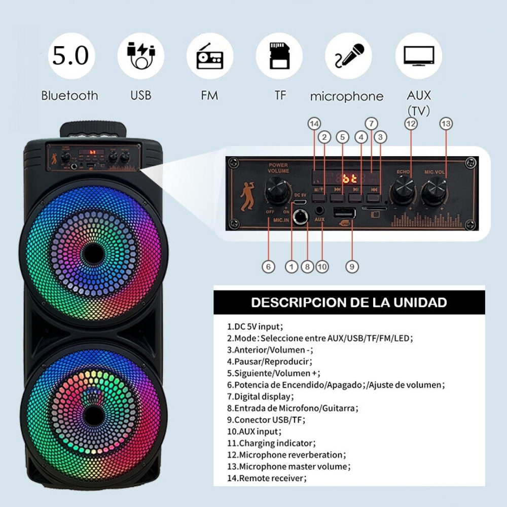 BLUETOOTH CONNECTION: Connects via bluetooth with one click to your MP3, MP4, laptop, iPod, or phone. Press the button, hear it connect, and blast your favorite music. Also, it supports USB/TF/AUX/FM/MIC