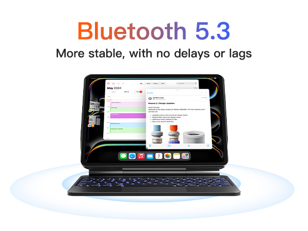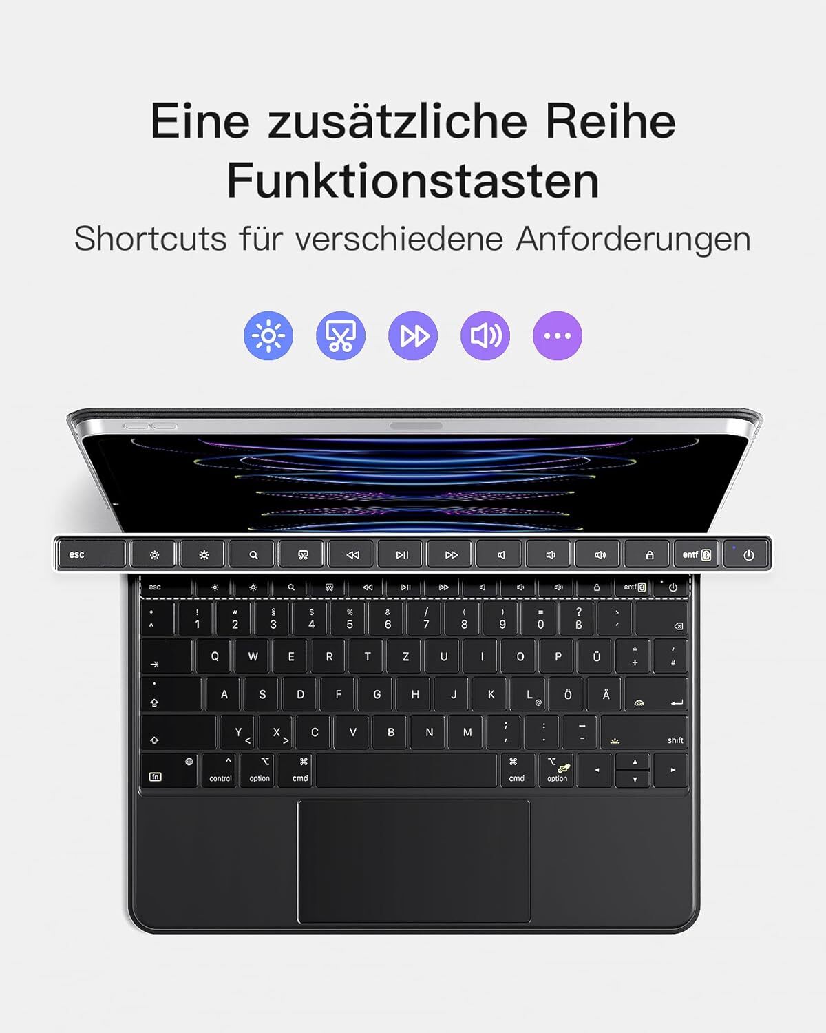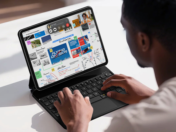 Ausgestattet mit einem vollständigen Satz von iPadOS-Tastaturkurzbefehlen, One-Touch-Zugriff auf Lautstärkeregler und mehr für effizientes Multitasking.