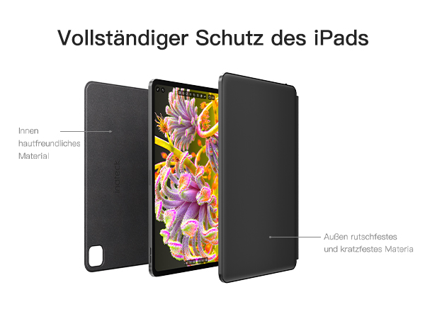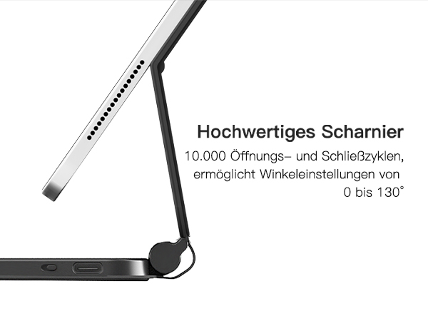 Nahtlose Magnetbefestigung für einfache Verwendung. Starke magnetische Ansaugung sorgt für die Sicherheit Ihres iPads, und der Cantilever-Ständer bringt 130° einstellbaren Winkel, so dass Sie den bequemsten Neigungswinkel wählen können, um Ihr iPad zu verwenden, und Sie können auch Ihr iPad direkt aufwecken oder in den Winterschlaf versetzen, indem Sie die Hülle öffnen oder schließen, was iPad-Strom spart, umweltfreundlich und intelligent.