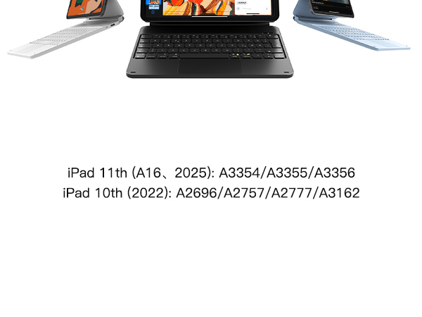Inateck Magnetische Tastatur Hülle für iPad 10/11 Generation A16 2025 11 Zoll, Easy-Set, Freitragender Ständer, 7-farbige Hintergrundbeleuchtung, mit Trackpad, KB09119