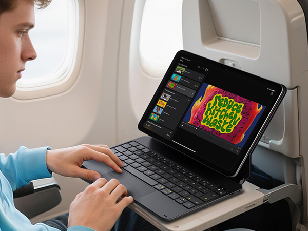 iPad entfalten – für leichtes Arbeiten auf Reisen oder unterwegs.