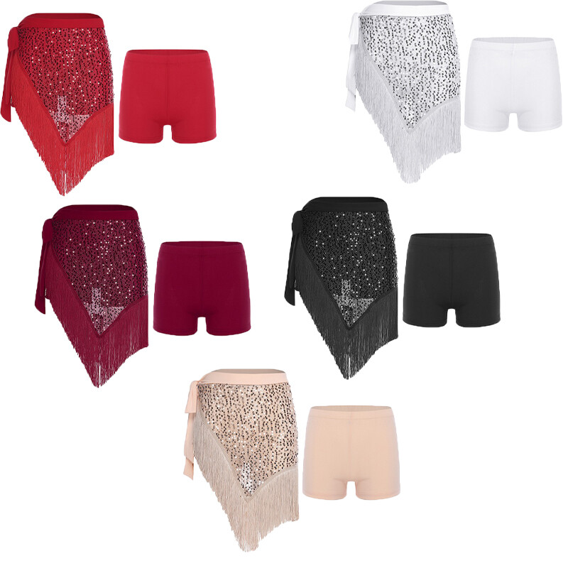 Womens Dress Salsa Hip Scarf Self-tied Skirt Stage Glittery Party Sequin TrimsUSD 6.99