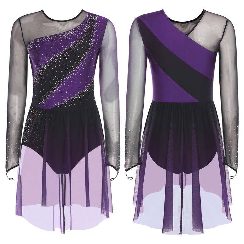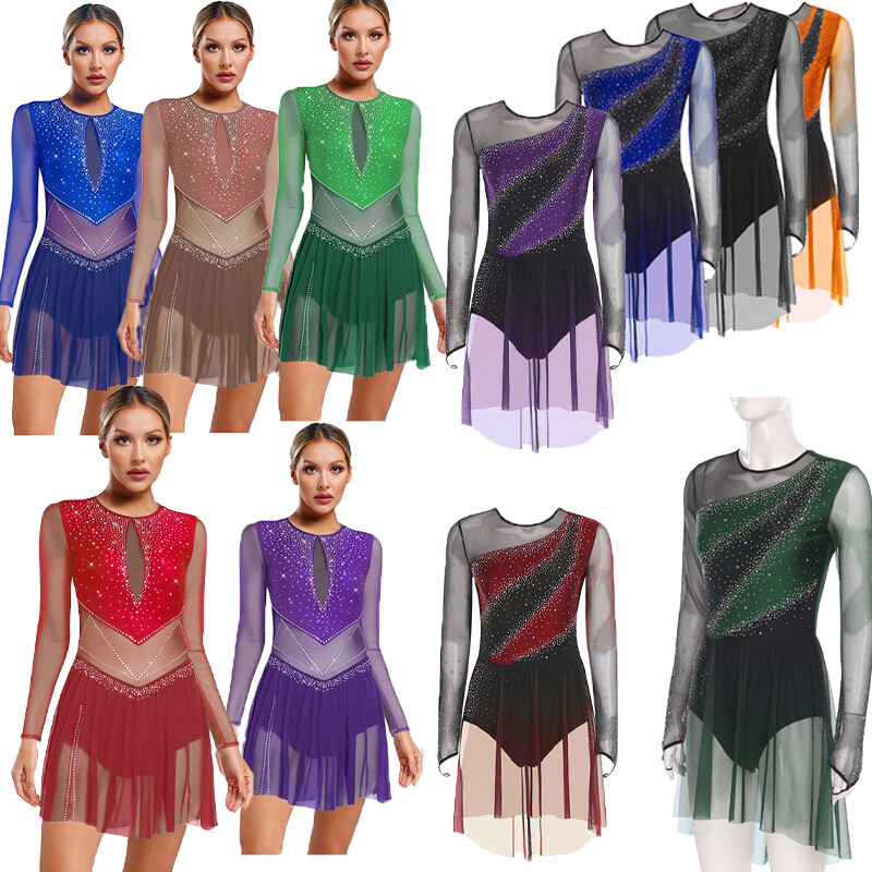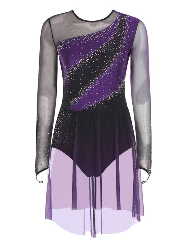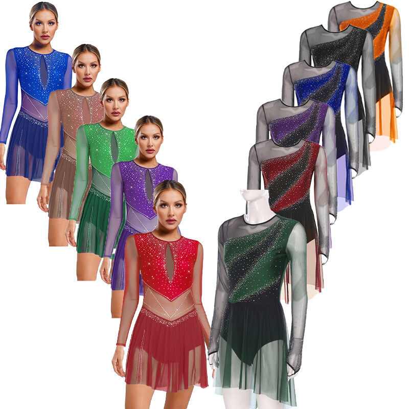 The shiny rhinestones and sheer mesh bring a sense of luxury and sparkle, making it perfect for figure skating, dance performances, competitions and other occasions.
