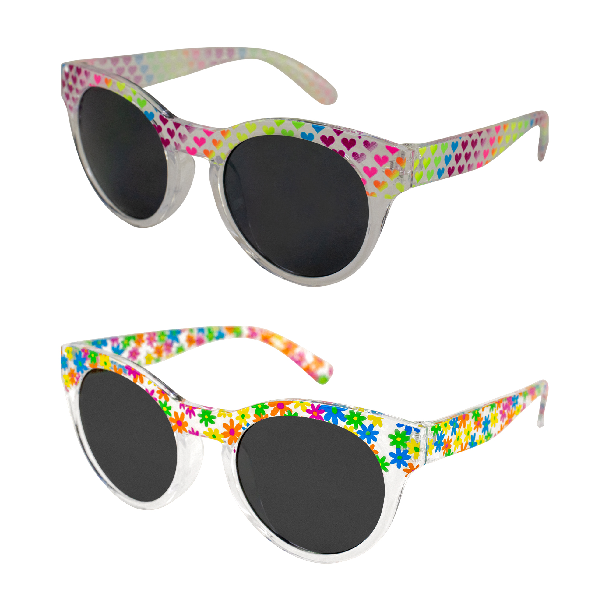 Using the Islander Eyes Pizzazz Trendy Kids Sunglasses will let your child be covered, confident, and fashionable. For a sleek and sophisticated look, complement the colorful Neon Hearts and brilliant floral designs in this amazing two-pack with smooth, solid smoke lenses. These sunglasses give your youngster the right touch of personality and required eye protection whether their excursion is to the park, an outdoor activity, or a special event. Designed for all-day comfort, these robust but lightweight sunglasses provide young drivers with a good and safe fit. Active children that enjoy exploring will find these impact-resistant lenses the optimum fit for daily drops, falls, and rigorous play. The Neon Hearts design offers a humorous and original touch, so stressing a flash of personality and charm while the Flowers pattern has a joyous and colorful style that distinguishes any crowd. Your child can mix and match these two sophisticated designs to show their uniqueness whether they choose a fun and whimsical look or a strong and vibrant one. The safe fit prevents slippiness, so it maintains their position over strenuous sports including climbing, jumping, and jogging. Designed with premium materials, they are meant to resist the hectic life of children who adore running about, exploring, and playing. Whether she is on a family outing, a summer vacation, a day at the theme park, these sunglasses will keep your child covered and stylish. Ideal for vacations, birthdays, or daily outings, this two-pack of sunglasses offers young trendsetters that appreciate originality a great gift. Children that enjoy expressing themselves under the sun will find the Islander Eyes Pizzazz sunglasses the best addition with their stylish designs, robust frame, and comfortable fit. Let your child welcome their style, boldly explore the earth, and enjoy every trip using these must-have colors!