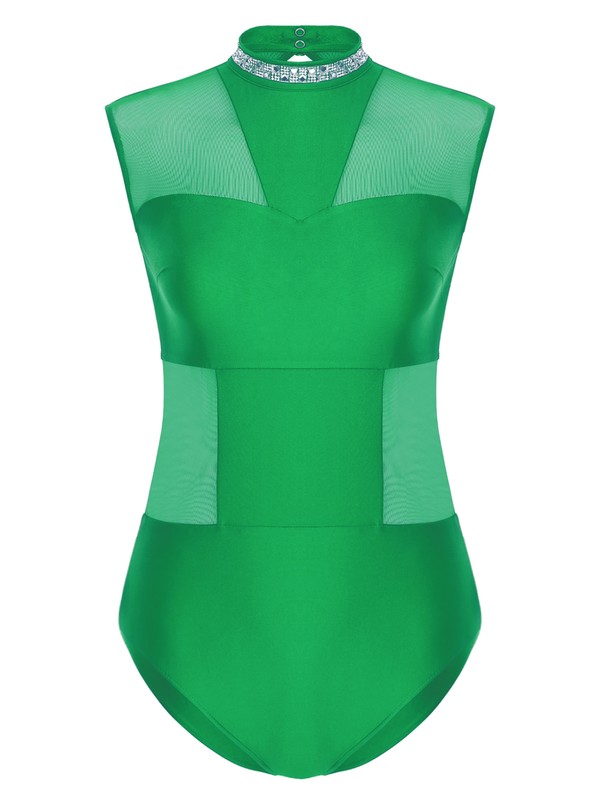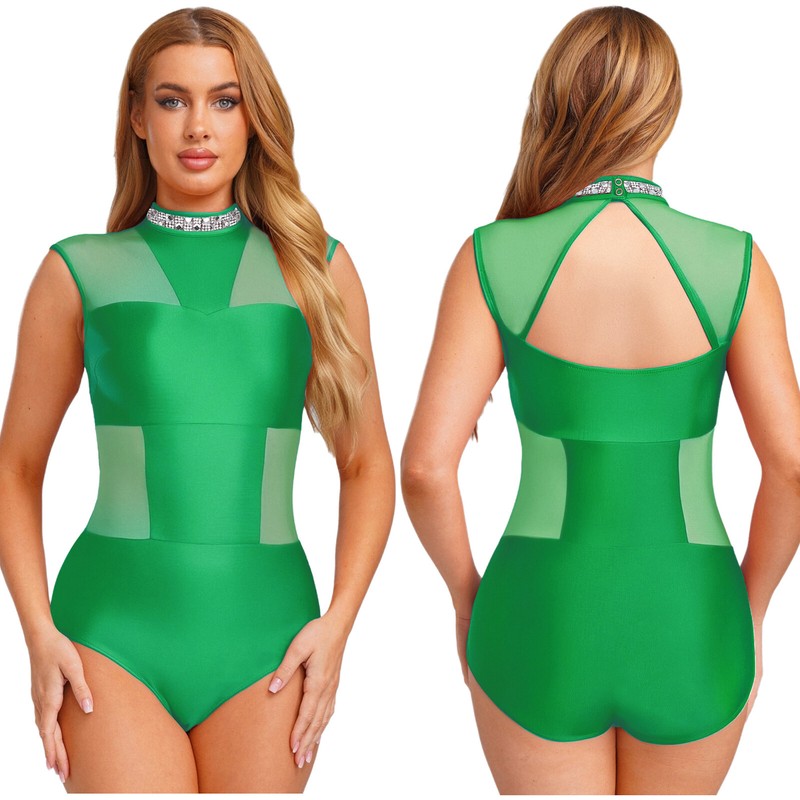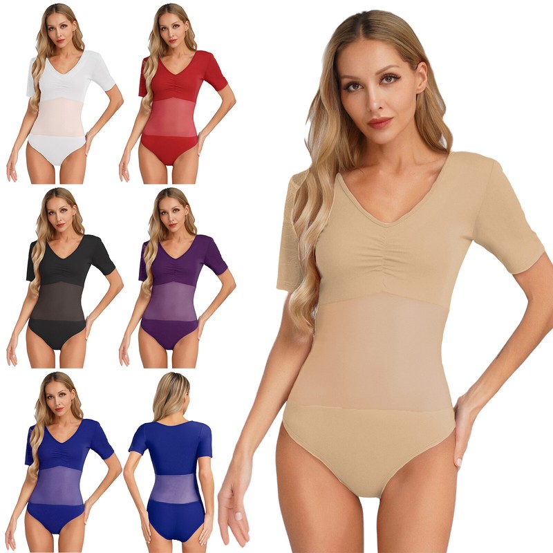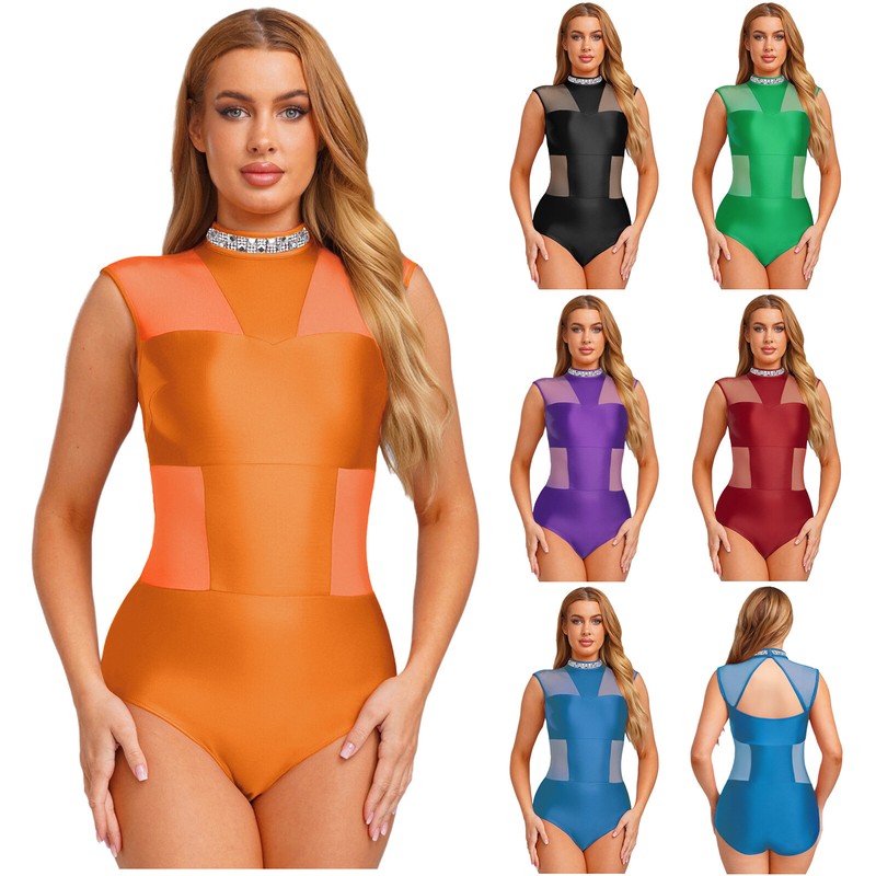 Set Include: 1Pc Women's Mesh Patchwork Dance Leotard