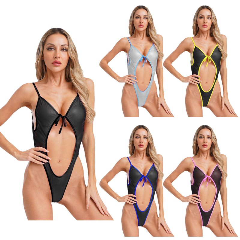 Halter neck with straps tie at back, sleeveless and keyhole back opening, high cut legs, great to show off your body curves.