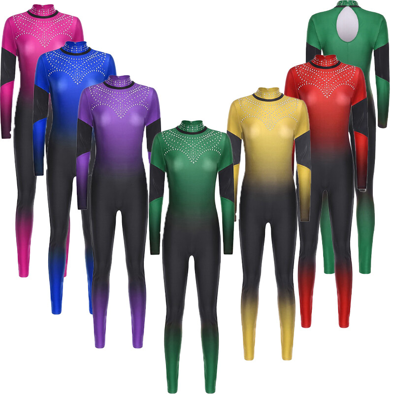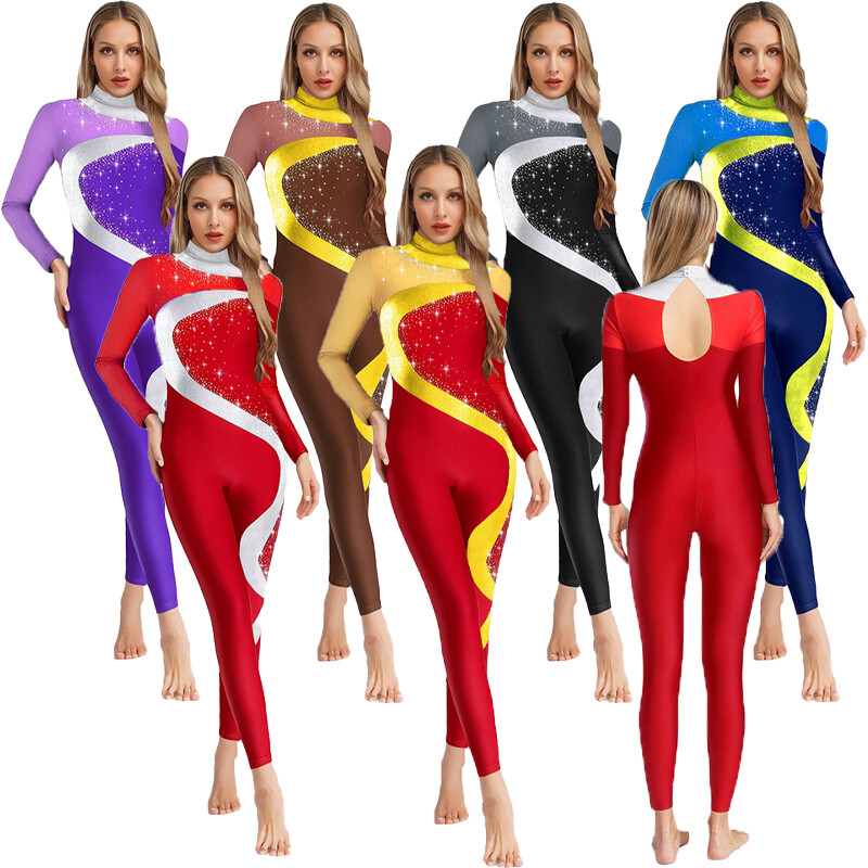 The rhinestone - decorated collar is a glamorous feature that makes you look outstanding during dance shows or competitions
