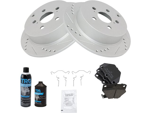 Package Contents: (1) Rear Ceramic Brake Pad Set; (1) Brake Cleaner & Fluid Kit; (1) Rear Premium G-Coated Performance Brake Rotor Set