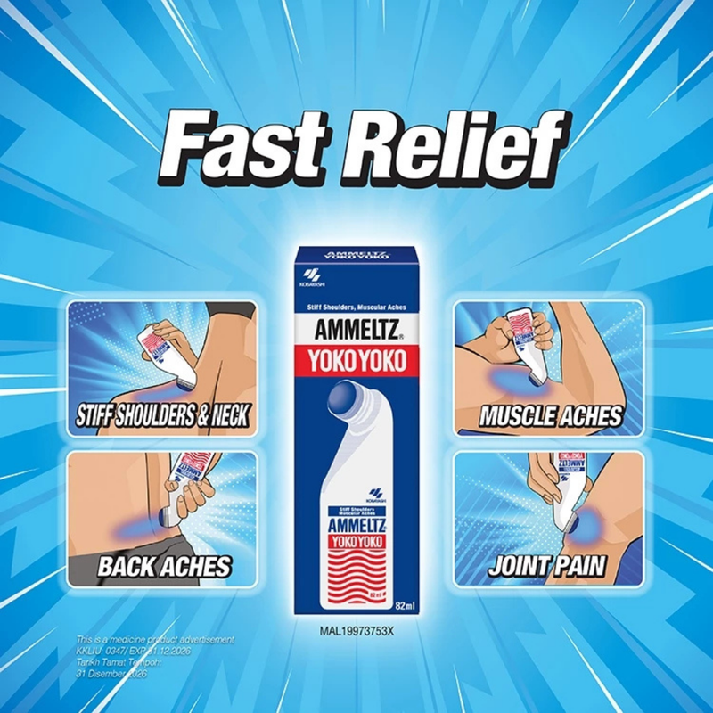 Ammeltz Yoko Yoko is Japanβs trusted topical liquid solution for fast, targeted relief of muscle aches, stiff shoulders, back pain, joint discomfort, and other body strains. Designed with a convenient angled applicator for easy self-application, especially on hard-to-reach areas like the neck and back.