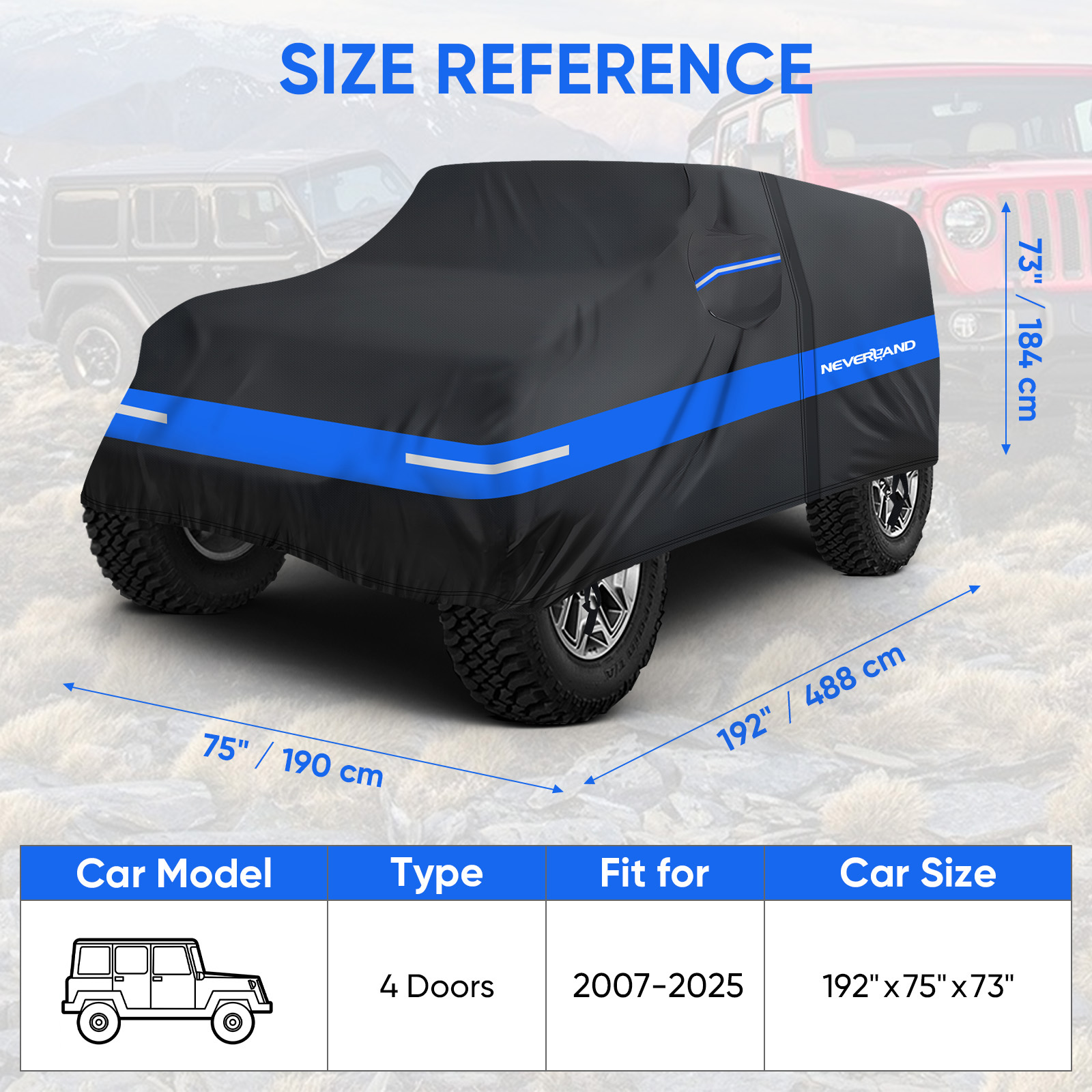 Fitment: for Jeep Wrangler 4 doors 2007-2025