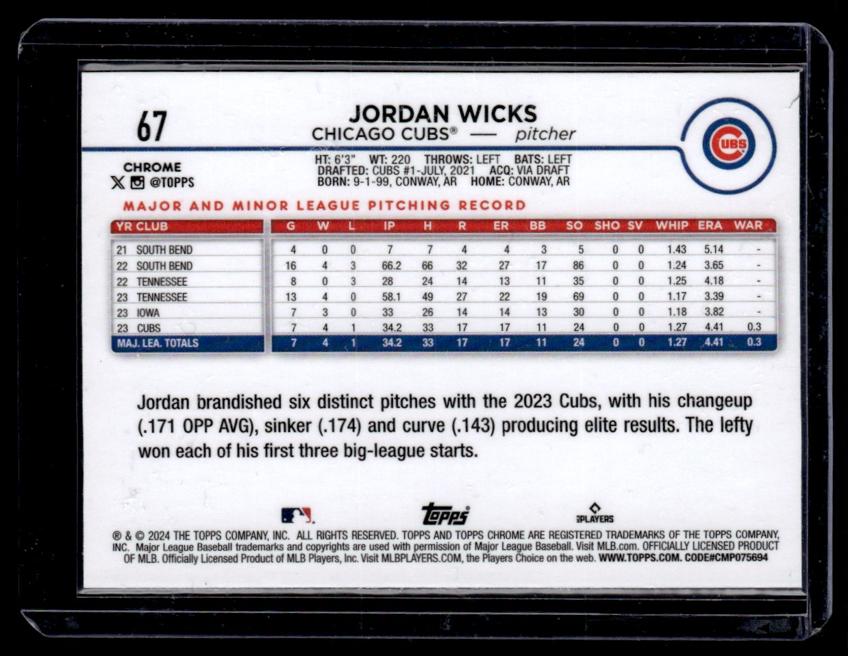 2024 Topps Chrome Jordan Wicks Rookie Chicago Cubs #67