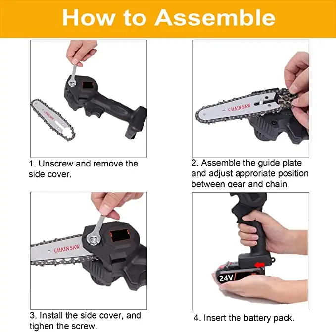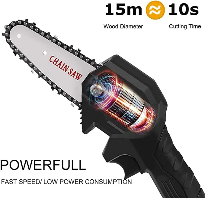 Rechargeable electric chain saw, light and portable, long battery life, no damage to the bark.