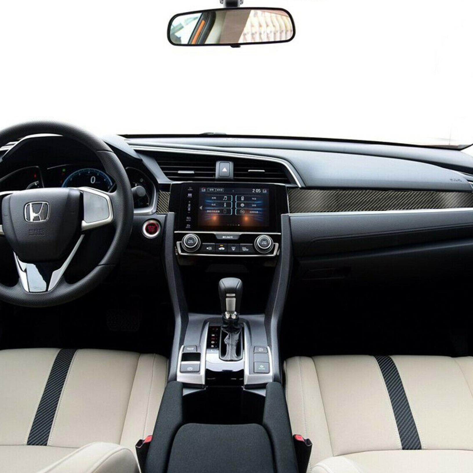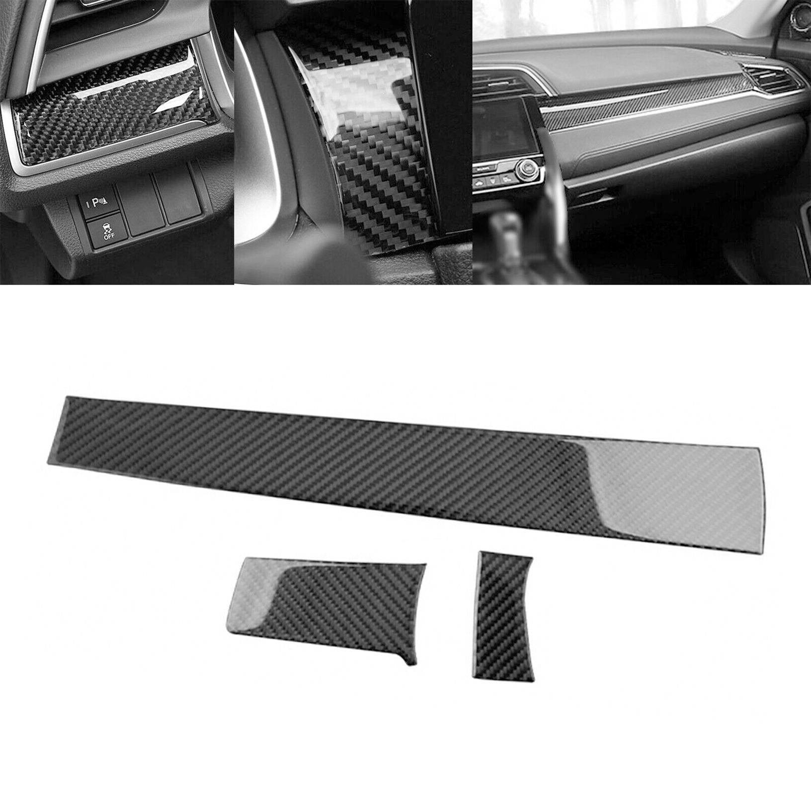 Honda Civic 2016, 2017, 2018, 2019, 2020 and 2021 have this list on the three real carbon fiber automotive interior console dashboard decorative stickers.