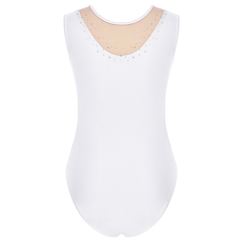 The sleeveless bodysuit provides freedom of movement, perfect for gymnastics, ballet, or other dance activities.