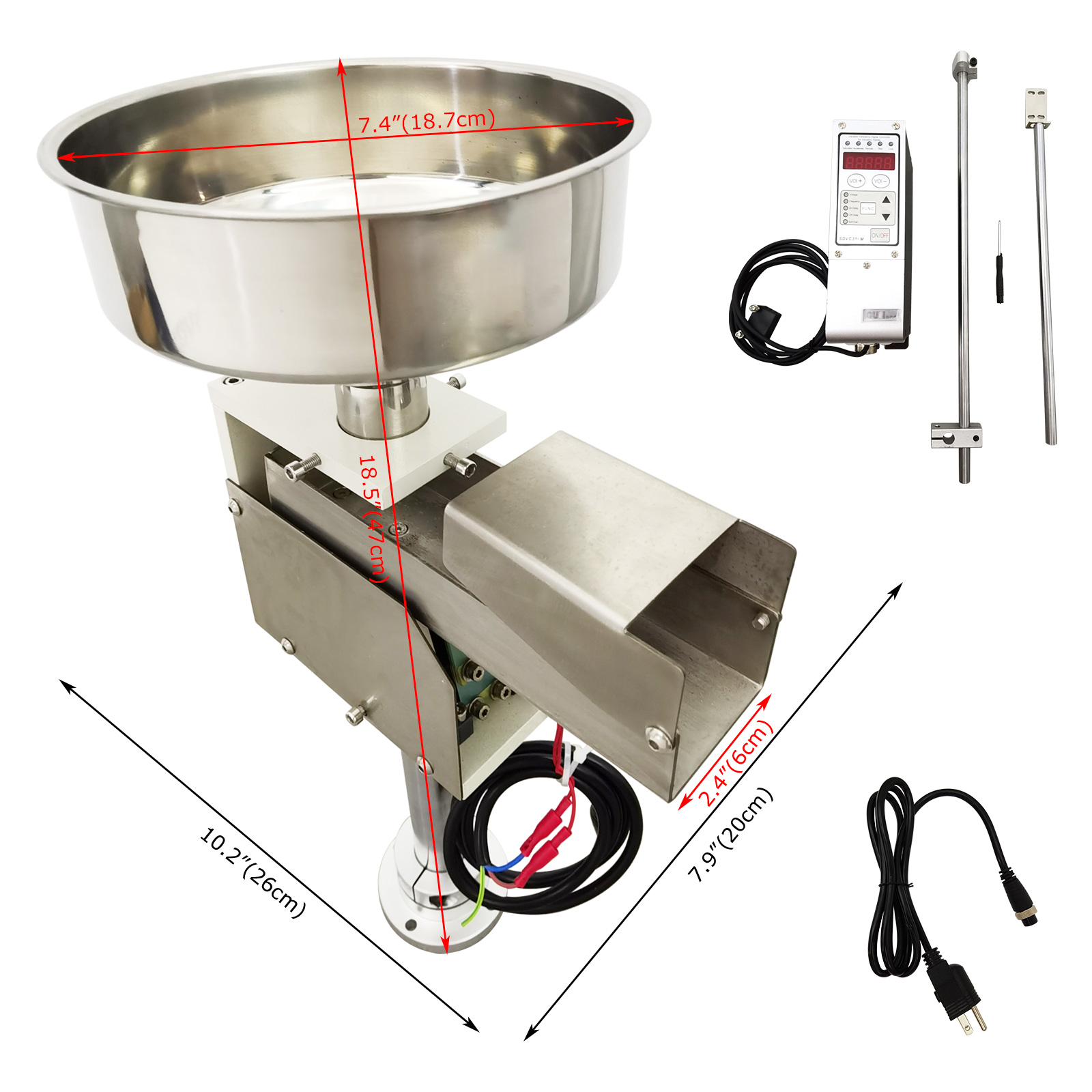 | This controller has the following functions: automatic voltage regulation, slow start time setting, touch switch, intelligent photoelectric sensing, keyboard locking, factory setting restoration, control output, maximum output limit, overheat protection function, overcurrent protection function, short circuit protection function, acceleration function, and waveform index setting. | The direct vibration feeder vibrates by the motor, has the advantages of simple structure, high efficiency, low noise, less power consumption, and good adjustment performance. |