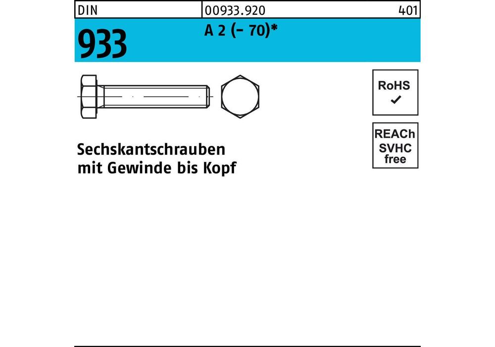 Reyher Sechskantschraube DIN 933 VG M 6 x 25 A 2 (- 70)