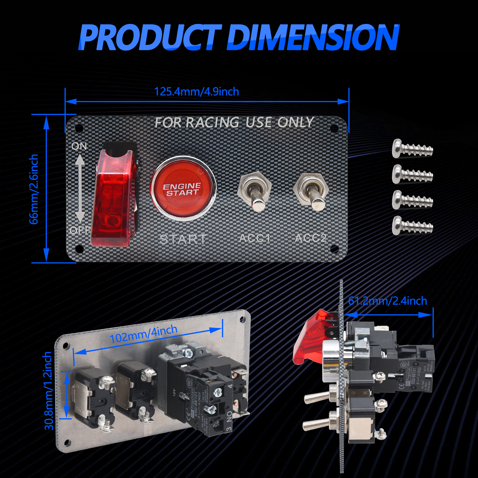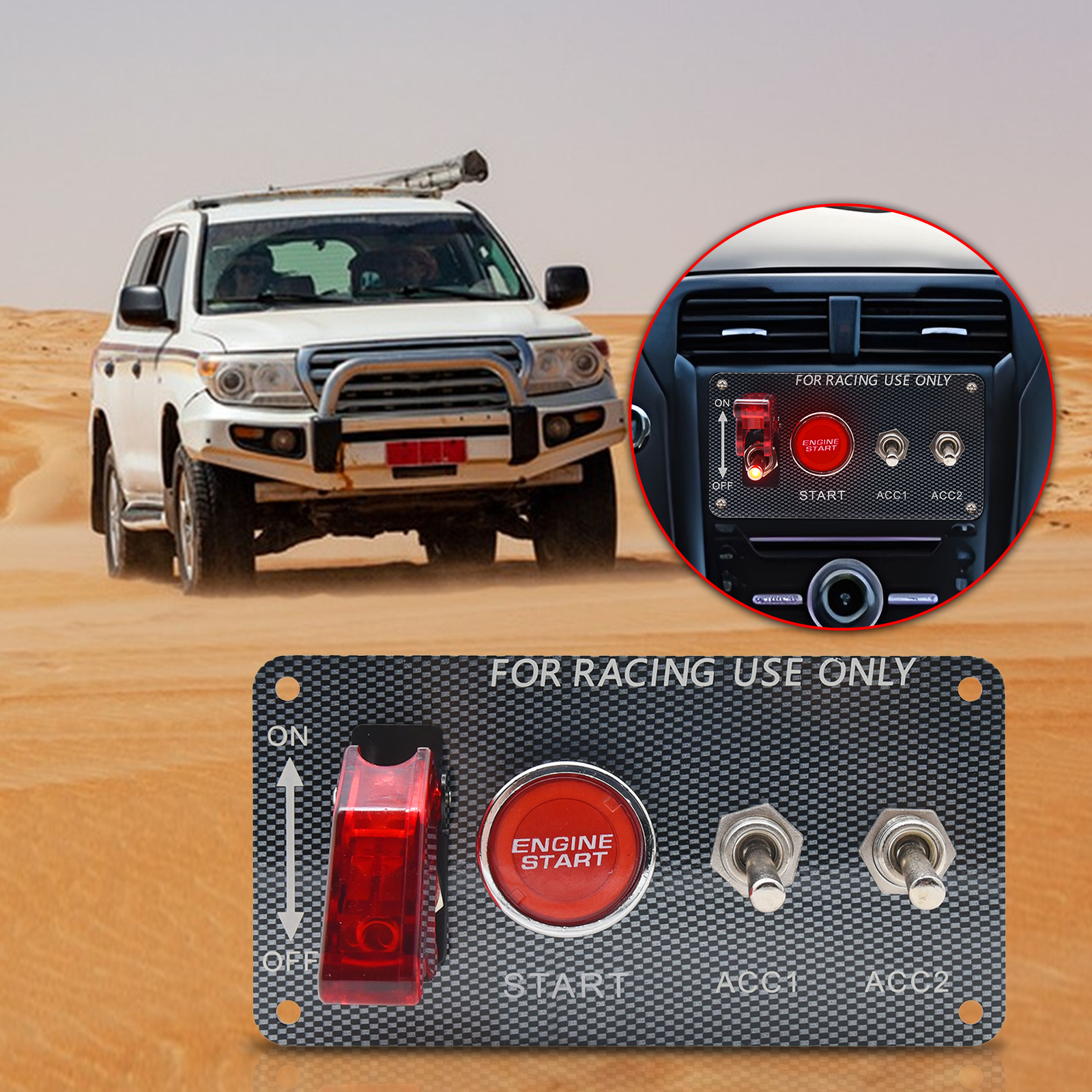 Ignition Engine Start Switch Panel Toggle Carbon Fibre 4 in 1 Car Truck Racing