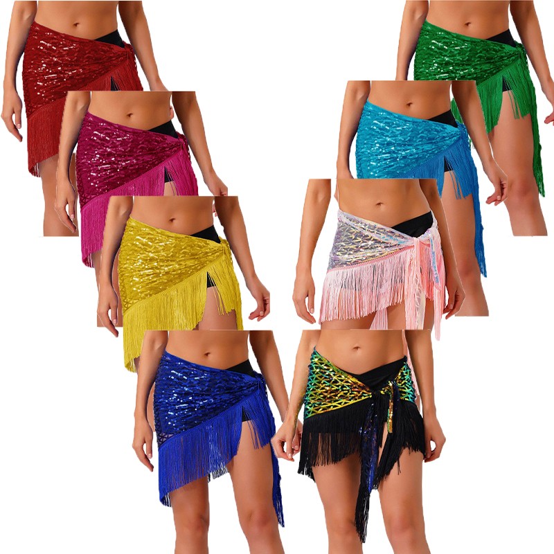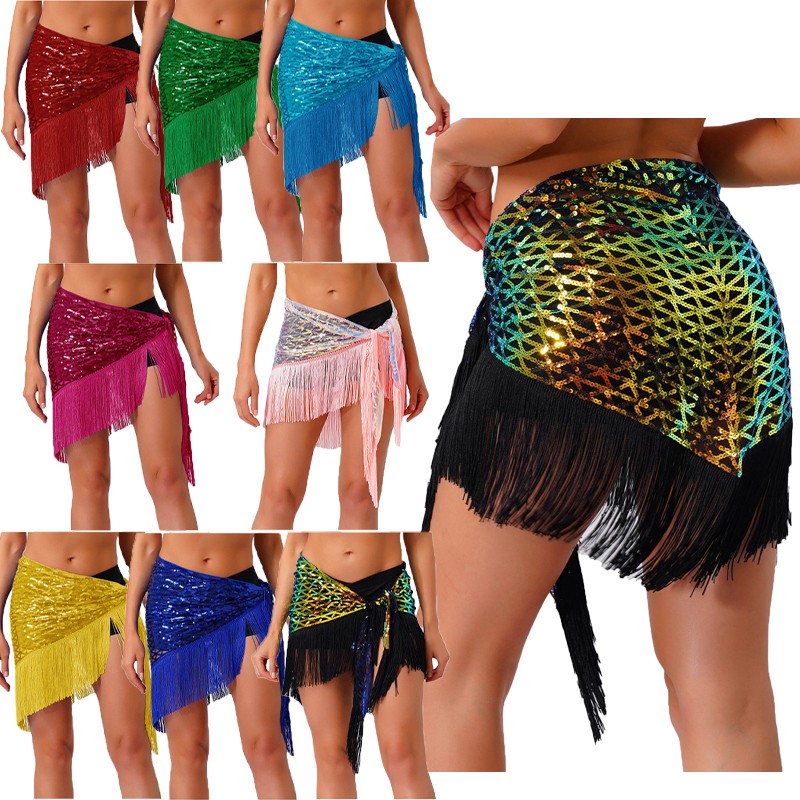 Crafted from a blend of polyester and sequins, the hip scarf is both durable and eye-catching, offering a comfortable fit for all-day wear.