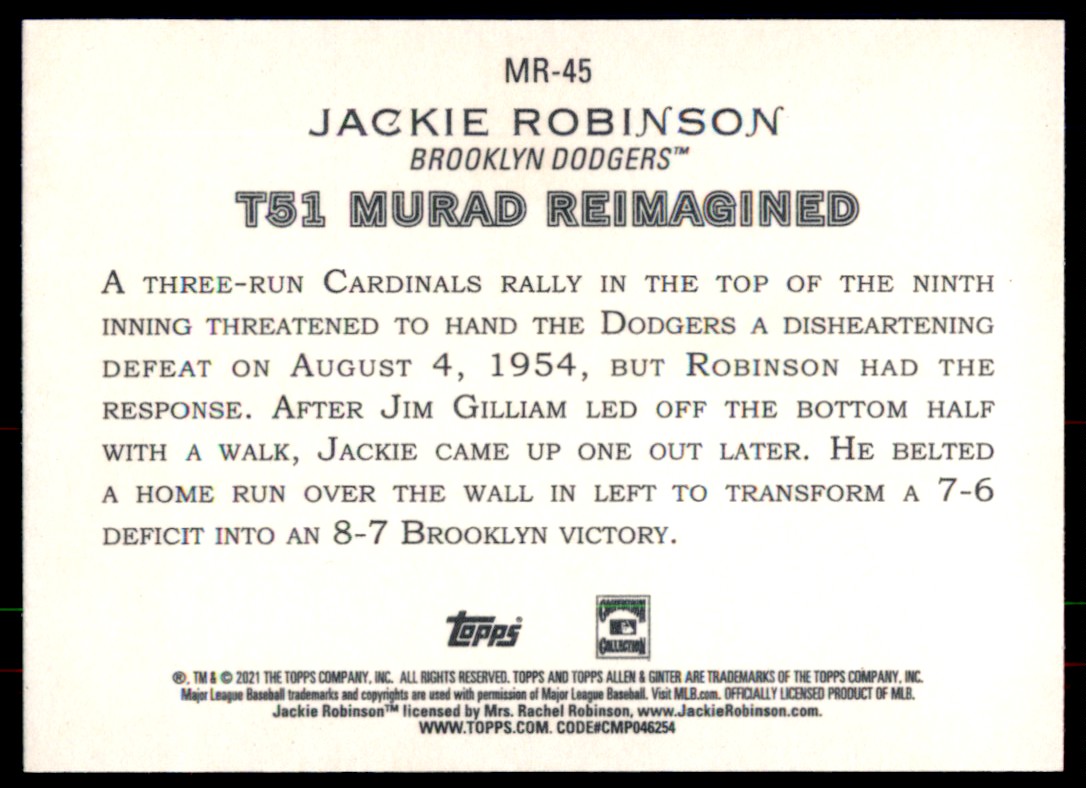 | 2021 Topps Allen & Ginter T51 MURAD Reimagined Jackie Robinson Brooklyn Dodgers | ||||||||||||||||