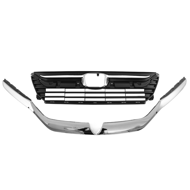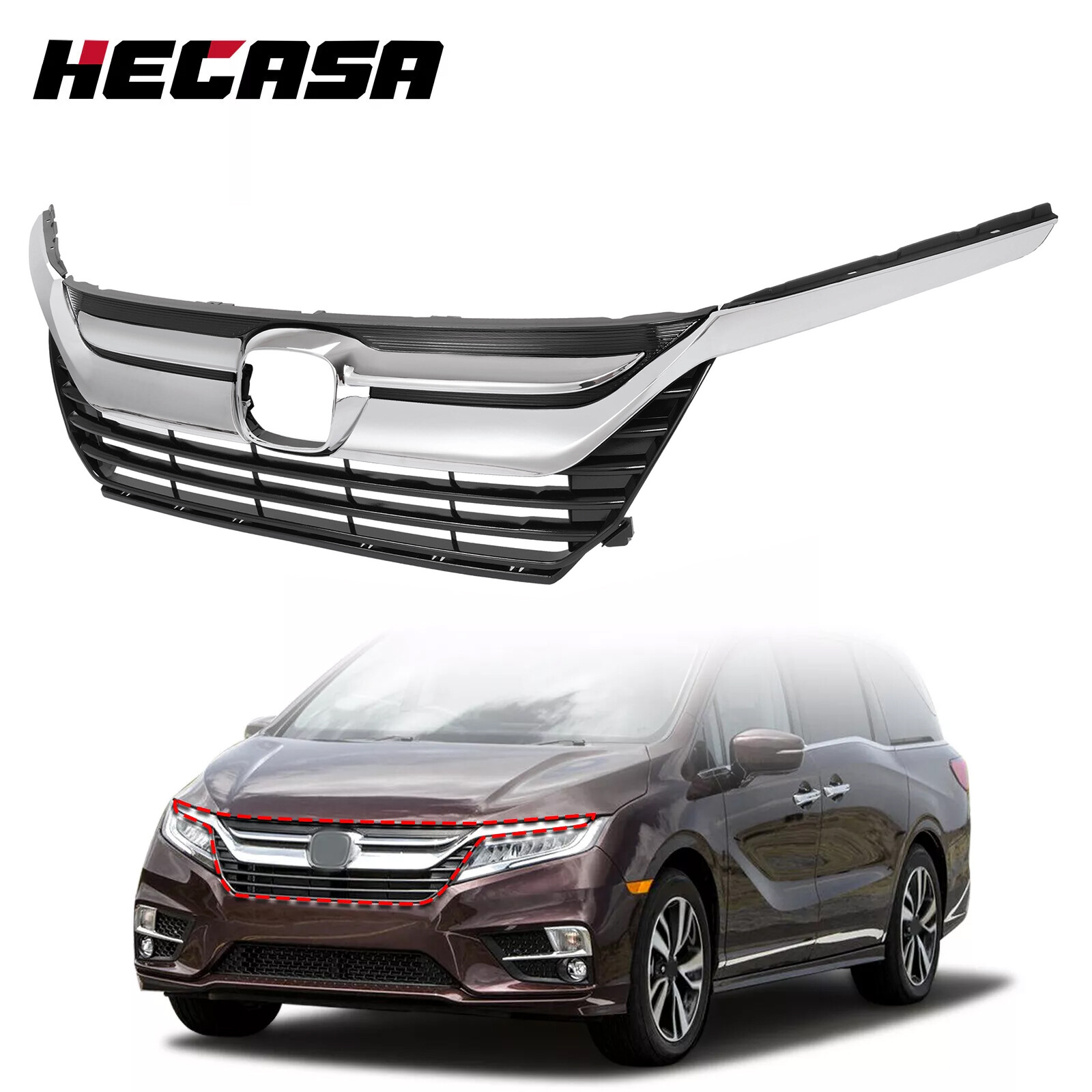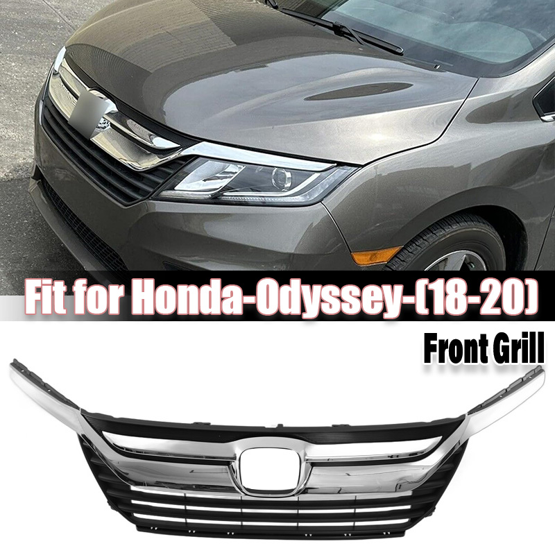 For Honda Odyssey 2018-2021 Front Upper Grille+Chrome Headlight Eyelid Molding