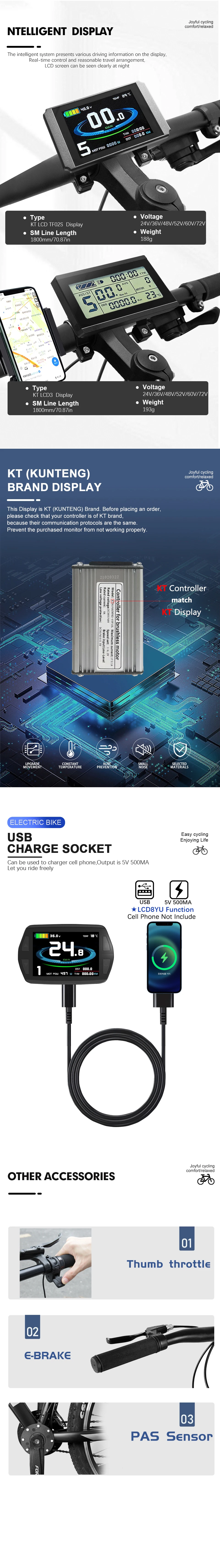 ●Voltage:24V 36V 48V 52V universal,72V for LCD3 LCD5