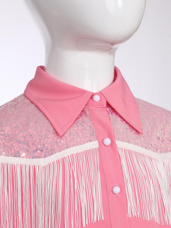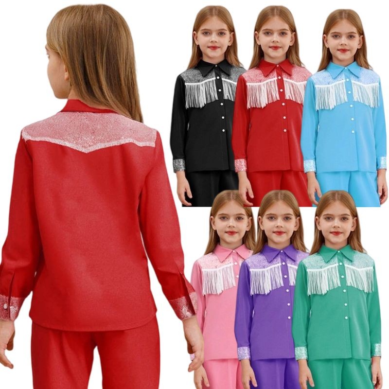 Set Include: 1Pc Girls Western Cowgirl Costume Lapel Long Sleeves Button-down Shirt