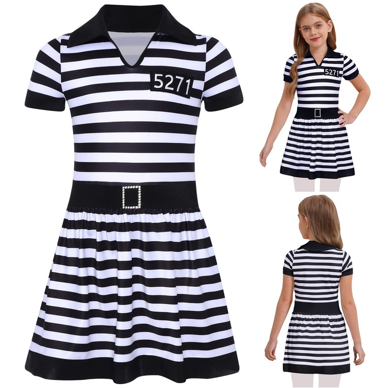 The striped pattern and prisoner-themed design are trendy and eye-catching, making your girl stand out in the crowd and follow the latest fashion trends.