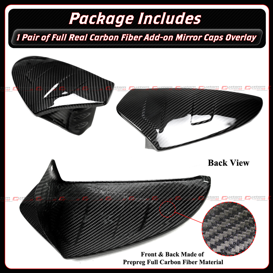 - Package Includes : 1 Pair of Full Carbon Fiber Side Mirror Addon Covers (Both Left and Right Side)