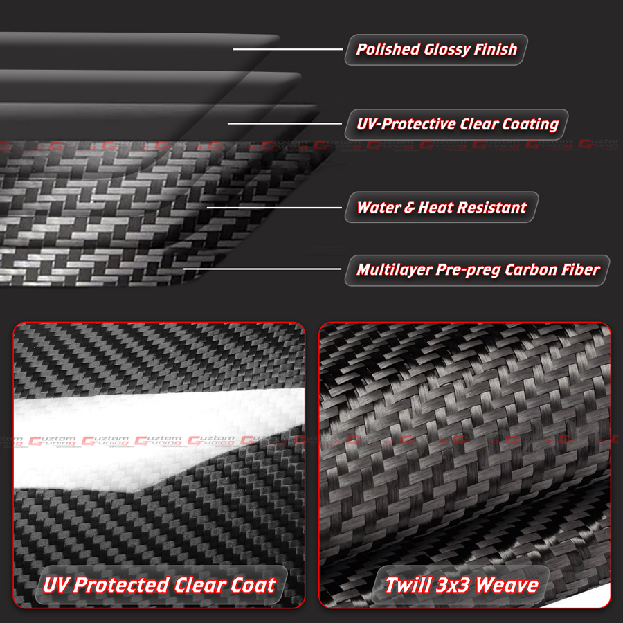 - 100% Real 3K Vacuumed & Glossy Hand-Laid Dry Carbon Fiber. Full Carbon Structure.