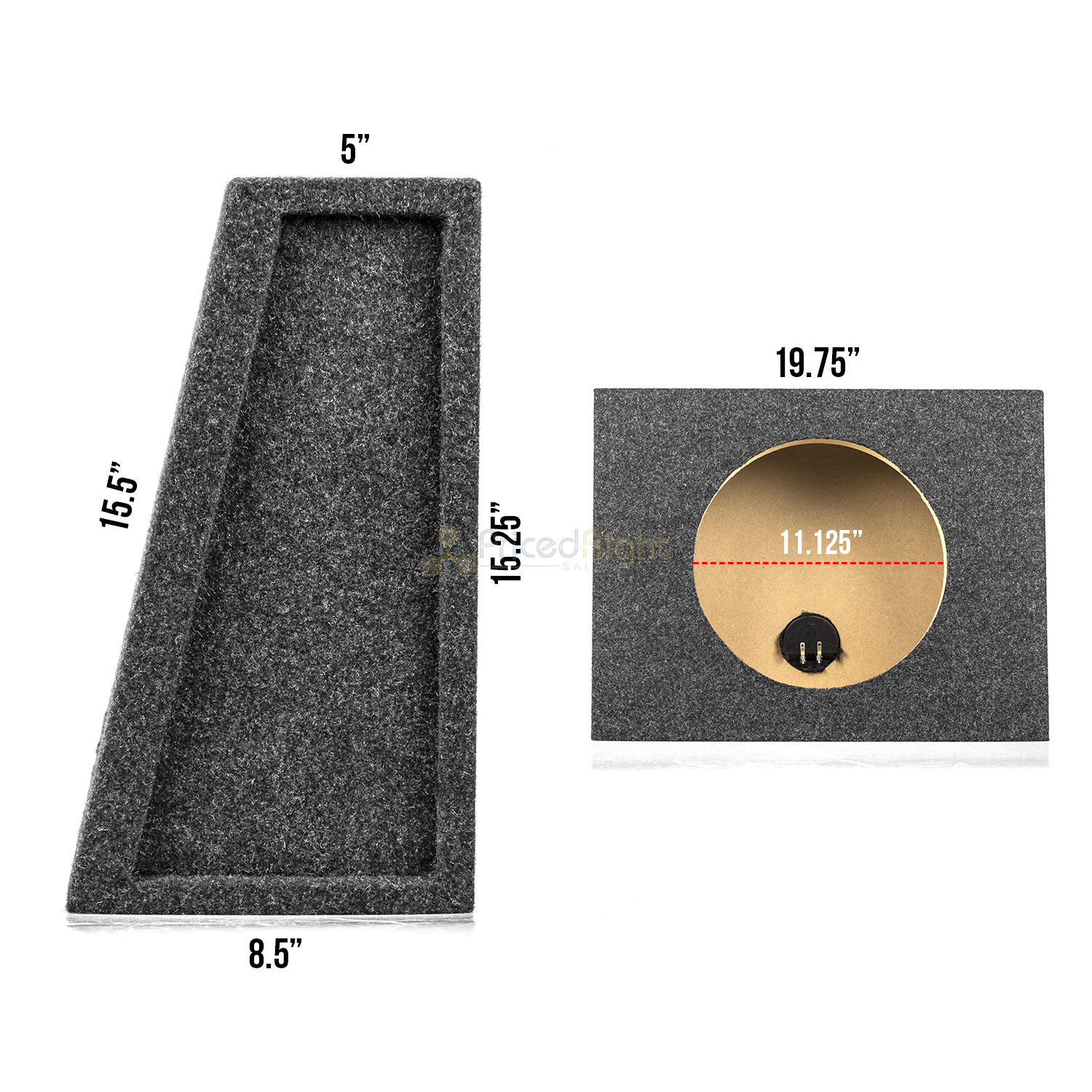 Brand new sealed 12" carpeted subwoofer truck box from RI Audio. With this box's 12" subwoofer mounting hole, this sealed sub box will help your system deliver deep bass while keeping a clean and sleek look inside your vehicle. This box is constructed out of sturdy 5/8" MDF with a 3/4" thick MDF Front panel, wrapped in a durable charcoal carpet, and features pre-installed terminals to make installation as easy as possible. Please see below for more details and specifications.