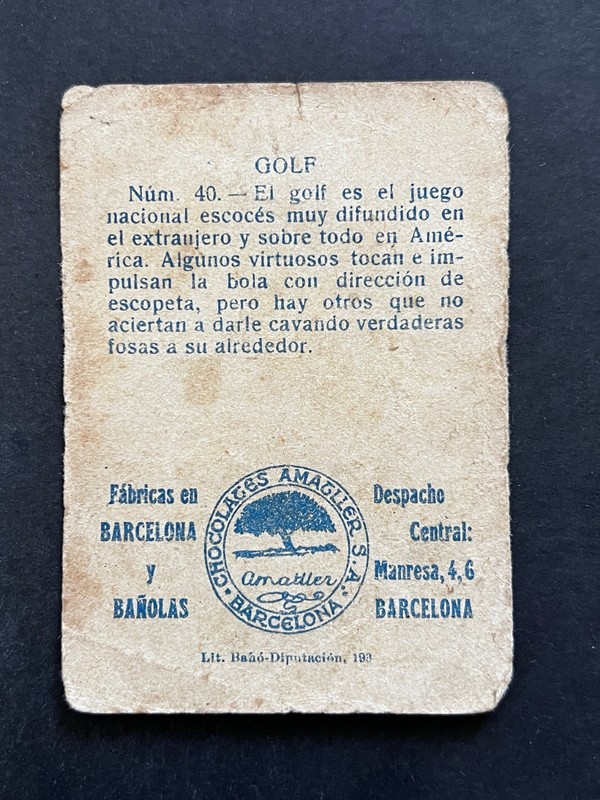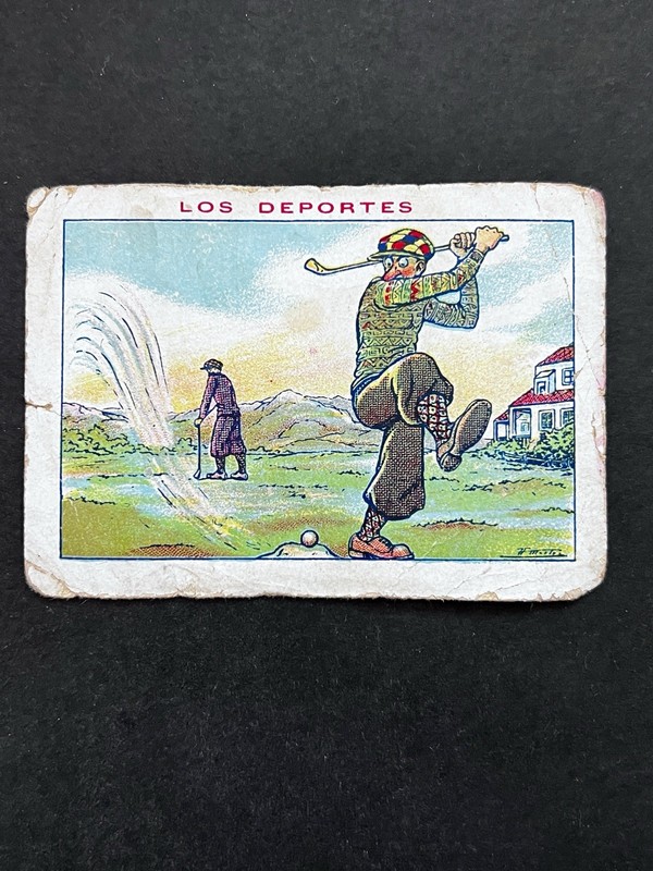 This card comes from the 1930 Chocolates Amatller “Los Deportes” set, a scarce prewar Spanish issue produced exclusively in Catalonia. The collection features 40 humoristic illustrations of the most relevant sports of the period, rendered in a playful and original artistic style.