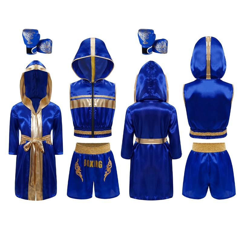 Set Include: 1x Top, 1x Shorts, 1Pc Boxing Robe, 1Pc Belt, 1 Pair Boxing Gloves