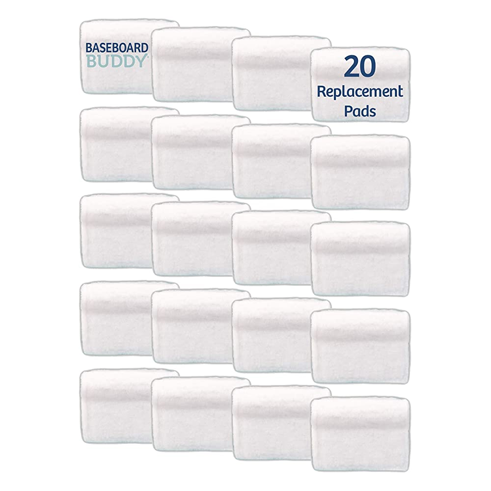 Baseboard Buddy - Dry or wet cleaning pad. Use the cleaning pad dry for simple dusting or easy dirt removal. Use it wet to clean stubborn dirt and make those baseboards or molding look shiny new! Rinses clean. Comes with 20 reusable pads. Compatible with baseboard buddy and similar cleaning products. Removes dirt easily and us reusable. No more wasting paper towels. Extension pad: 4''L x 4''W. Reusable product net content quantity: 20 Pack - White