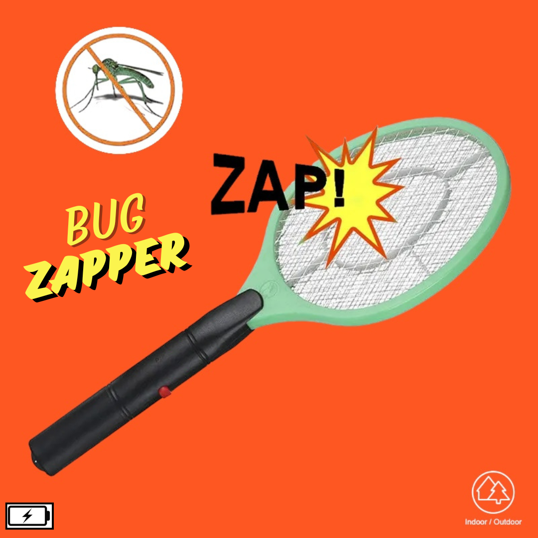 Bug Zapper - Handheld Indoor & Outdoor Mosquito & Flying Insect Zapper Swatter -- Arm yourself against pesky flying insects with this Electric Bug Zapper! Designed like a tennis racket, it features a mild electrical current that effectively repels mosquitoes and other flying bugs both indoors and outdoors. Just press the button and start swinging! This battery-powered device requires 2 AA batteries (not included) and comes in assorted colors, shipped based on stock availability.