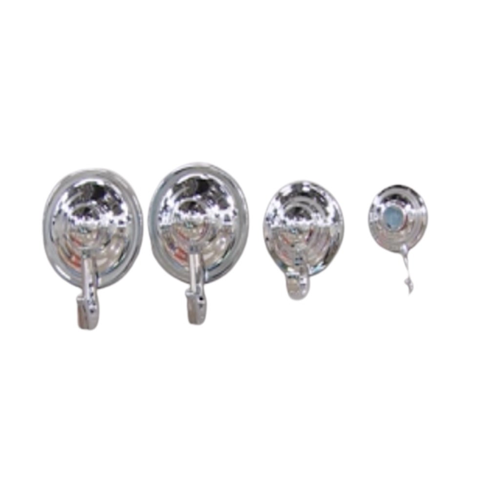 Forever Suction Hooks Work on Glass Tiles Metal Vacuum Suction Hooks. You can always use more hooks for hanging items in the garage on a boat or RV. These handy hooks serve as temporary or permanent fixtures on many surfaces with a red warning indicator ring letting you know when you're losing suction power. Get hooked! Works on glass mirrors tiles metal frosted glass painted and grained wood paint plate antique bricks painting board PVC Board. The hooks come in 3 sizes 2 large 1 medium and 1 small hook. Load 10 lbs Silver Set Of 4