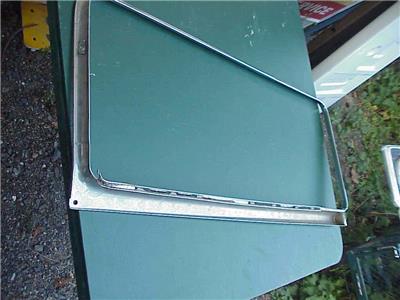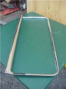 Original 1955 thru 1957 Chevrolet 2 door sedan inside passenger side door window garnish molding in beautiful triple chrome plating after it was sized for a chopped roof and door. It was very well done and is in great condition and never rusted or bent. No dents and not bent or tweaked. Measures inside opening at 13 1/8" at rear near door lock and 12 3/4" at front on the flat region.