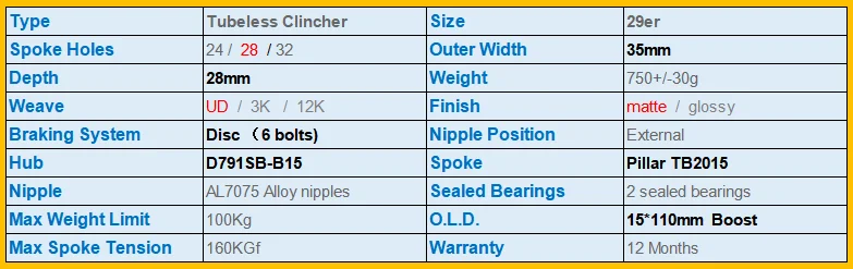29er MTB AM 35X28mm Tubeless Clincher
