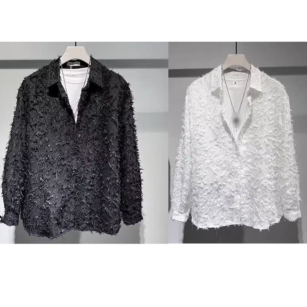 Chemises amples en plumes à revers mode pour hommes avec style coréen High Str