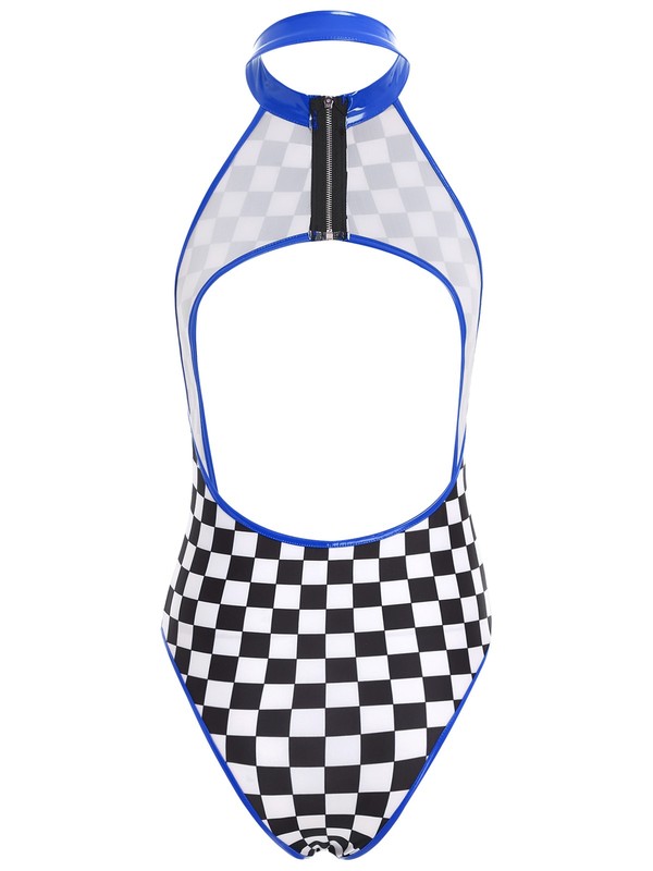 Womens See-through Mesh Crotchless Bodysuit Hollow Out Halter Backless Leotard Lingerie Nightwear.