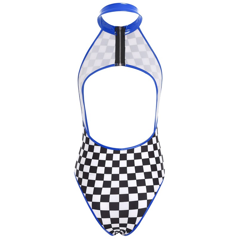 Halter neck, lace-up at back, sleeveless and backless bodysuit, a good gift for yourself or your lover.