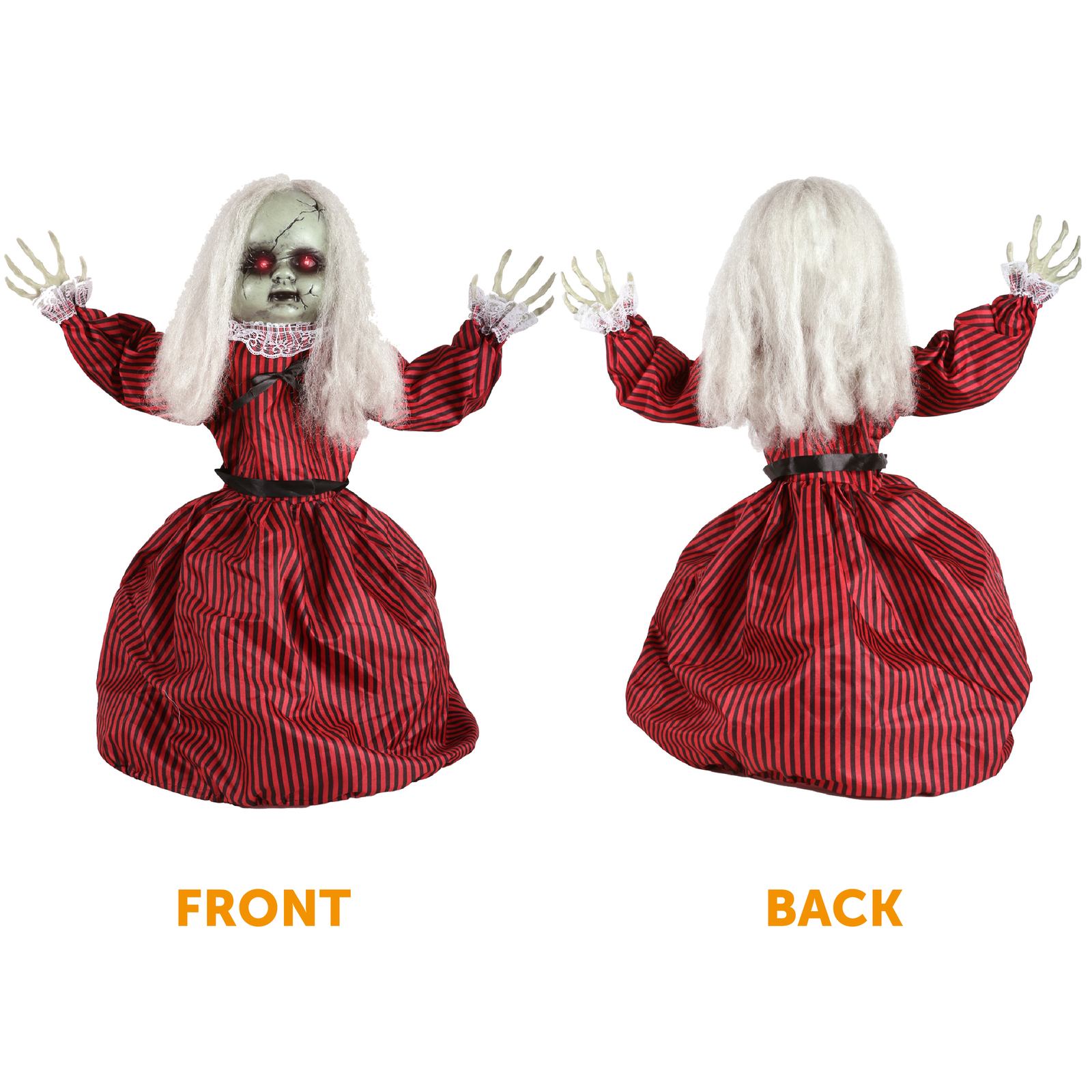 PERFECT FOR HALLOWEEN DECORATIONS, EVENTS, AND OCCASIONS: Whether you’re decorating your house this year for Halloween, a party hall, or any other event or occasion you need, this Animatronic Large Walking Doll Decoration is the perfect prop!