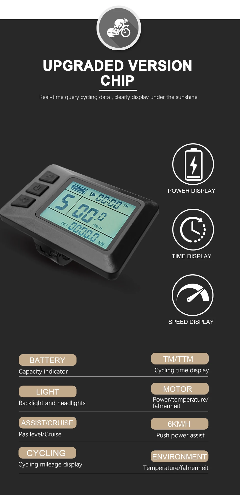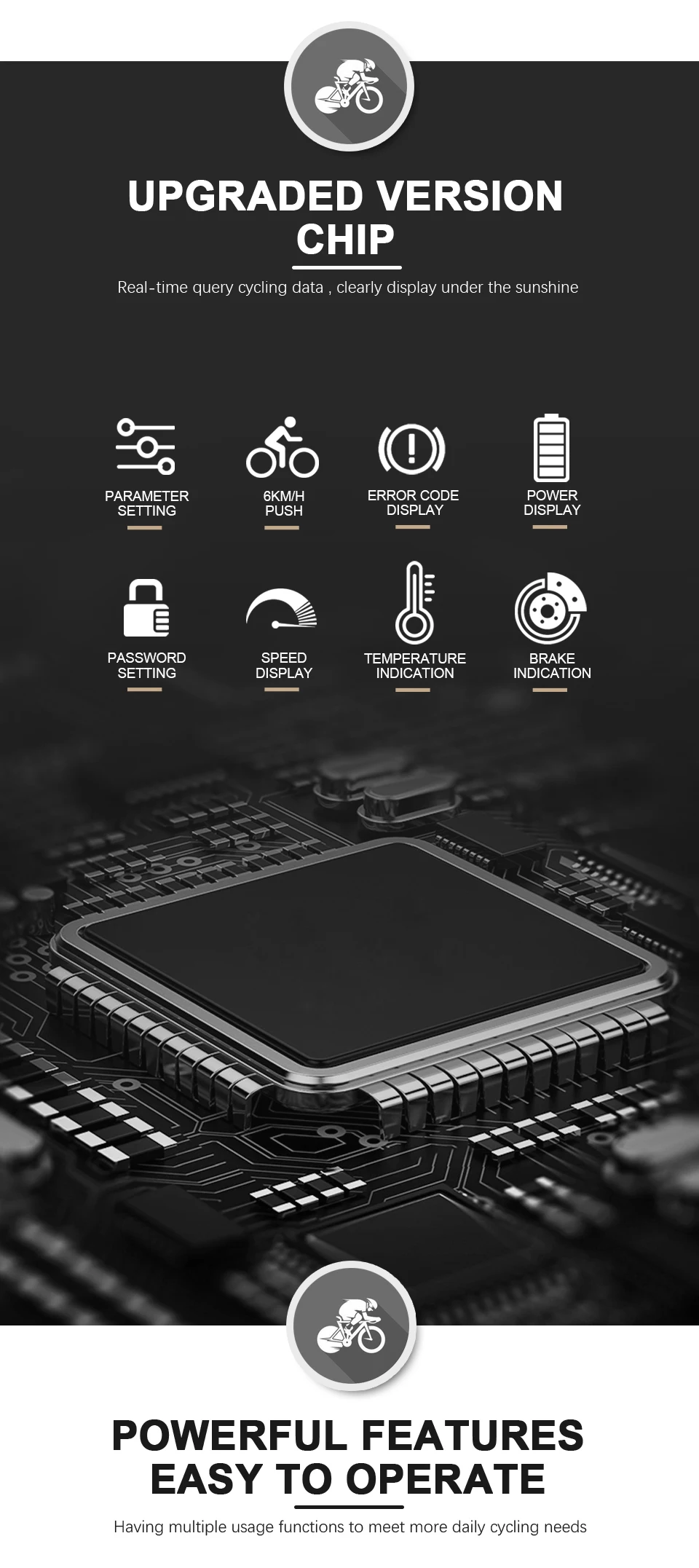 3. The KT display is beautiful and full of functions. The screen can display the riding speed, single mileage and accumulated mileage, riding time, assist gear, motor power and temperature, battery voltage and charging status, braking status, and ambient temperature. Other riding parameters.