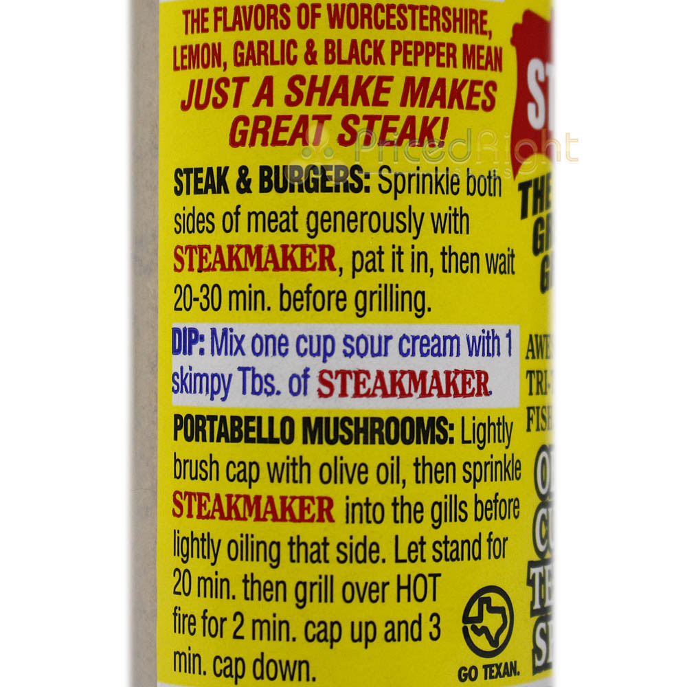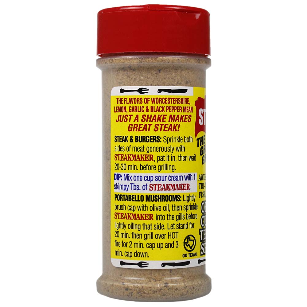 Obie Cue's Steakmaker Grilling Spice is THE great grilling spice. This blend is award-winning and took the BEST RUB ON THE PLANET award in 1995. It's perfect for elevating the flavor of steak, tri-tip, burgers, seafood, mushrooms, and more. Lemon, Worchestershire, Garlic, and Black Pepper lead the chorus of flavors that bring zing to anything you choose to use it with. Incredible taste can be added to gravies, dips...all with just a sprinkle! This perennial prizewinner makes 'so good' super easy! Proudly made by Texans in Texas, USA.