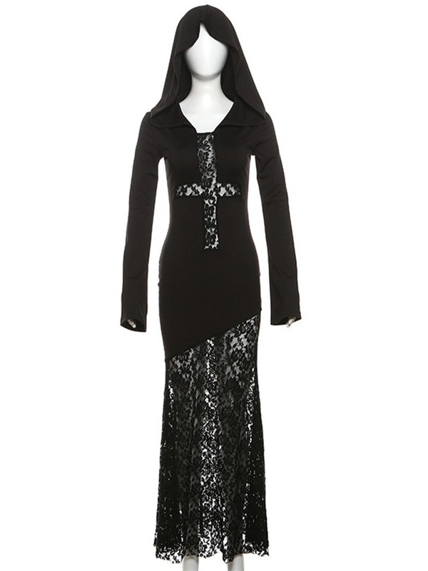 Hooded design and flared sleeves add a touch of drama and mystery, perfect for making a statement.