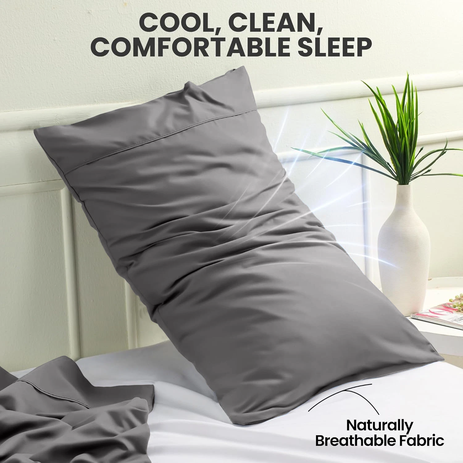 Our pillow cases are made of 100% brushed microfiber. You will feel soft and comfortable. The stitching of our pillowcases and the exquisite workmanship are excellent, so you won't have any loose threads. Our pillow covers are soft and smooth which helps to enjoy peaceful sleep all night, as well as bring a modern and fashionable atmosphere to your bedroom, or guest room. Wrinkle and fade-resistant pillowcases provide long-lasting comfort. The envelope closure design without a zipper is easy to install and remove from the pillow. Simple and eye-catching housewife pillow covers are ideal for most beddings in all seasons. A wide range of colours are available to freshen your mind when you come to bed. Choose from a variety of appealing and stylish tones. These pillowcases are available in 2 x (50 x 75 cm).