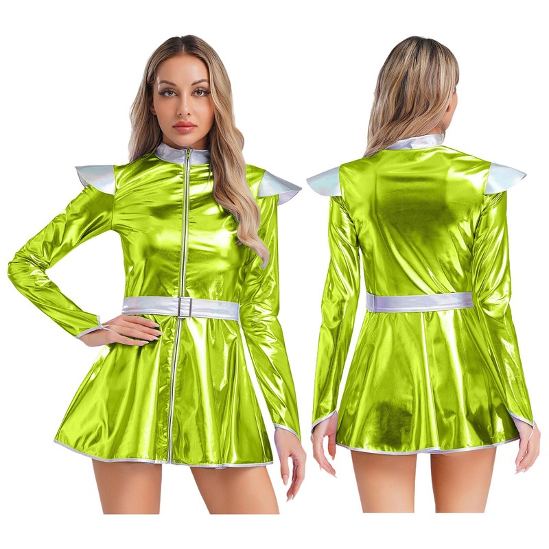 Alien-themed design, with shiny metallic surface and color block, making you stand out at the Halloween party and shows your unique personality.