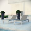 Maintain clean lines with the Shore Outdoor Patio Chaise Lounge Set in Wicker Rattan. Strong and durable, relax as you choose from four available recline positions or sunbathe while lying flush on Shore’s breathable wicker. Made with an anodized brushed aluminum frame, Shore Patio Chaise Lounge Chair is a breeze to assemble, comes with clear wheels for easy mobility on the top end, and non-marking black plastic foot caps under the bottom two support legs. Chic and minimalist, the Shore Outdoor Sun Lounger in Wicker Rattan is a piece built to last with the comfort and versatility you’ve been looking for in an outdoor lounger.