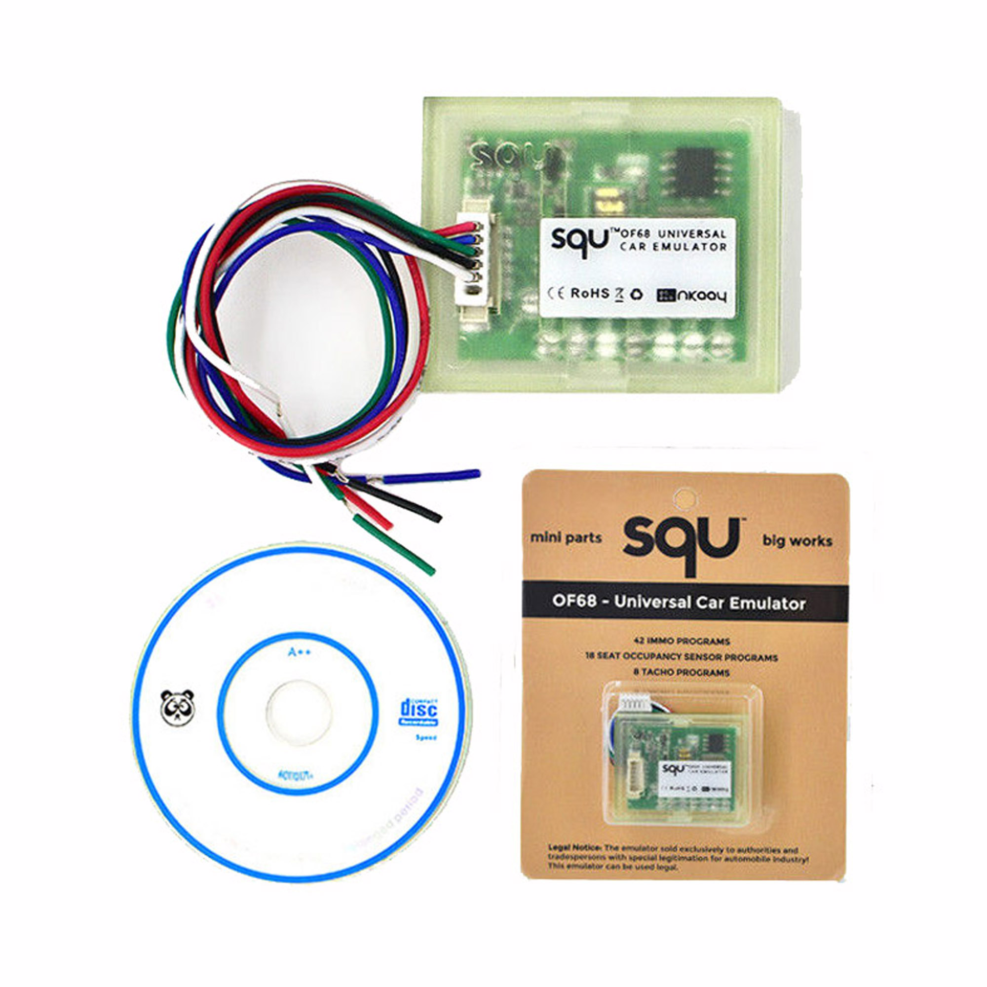 The SQU OF68 emulator comes with 68 programs that are dedicated to hundreds of car models and types of ECU.