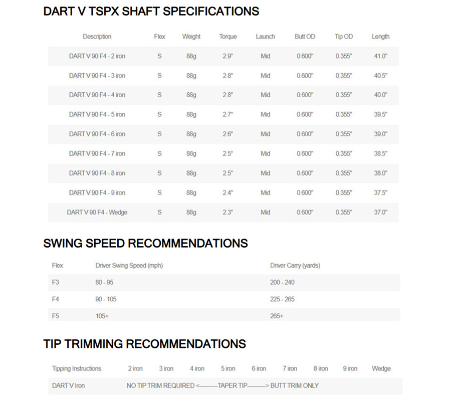 DART V IRON SHAFTS ARE AVAILABLE IN 3 WEIGHT CLASSES: 90, 105 AND 120