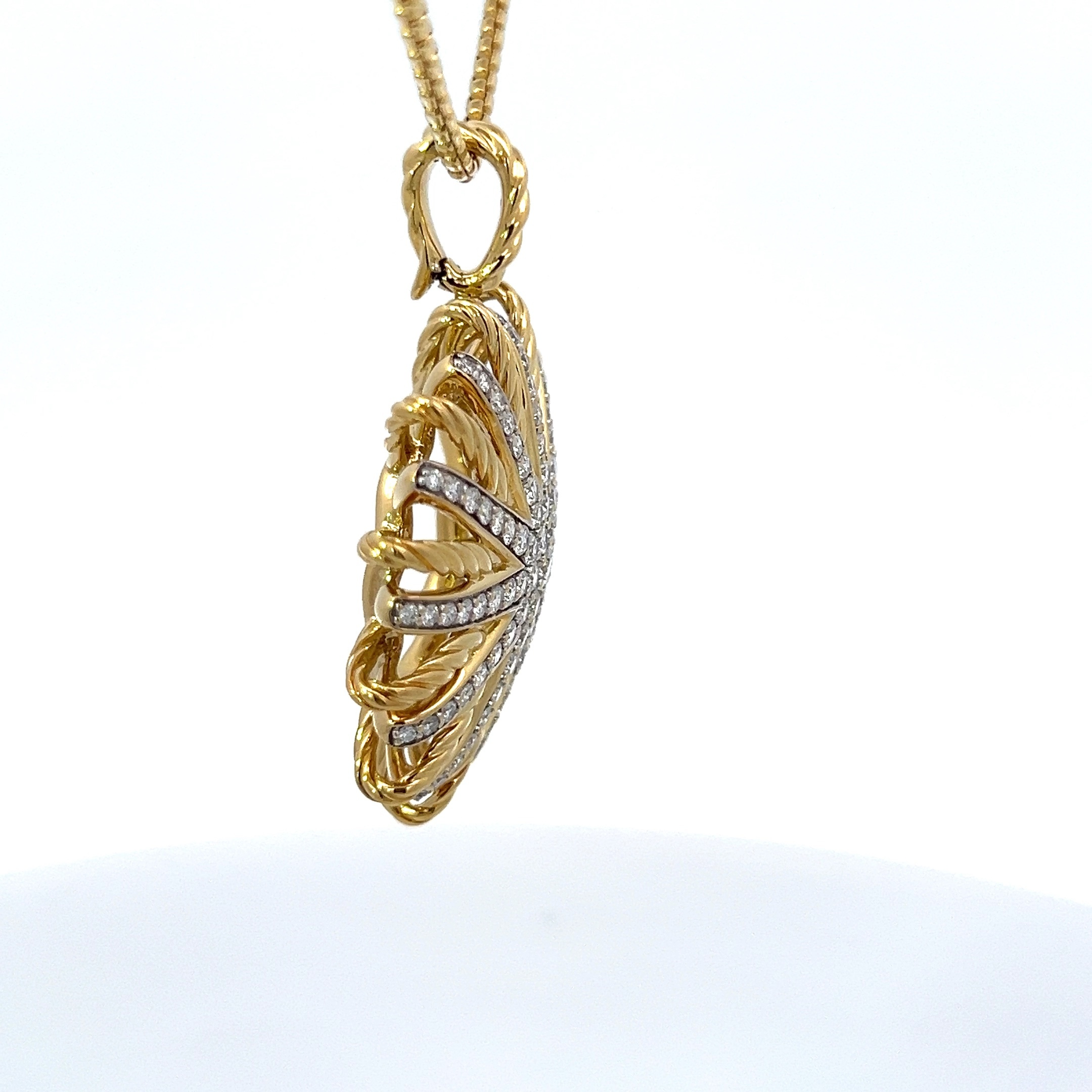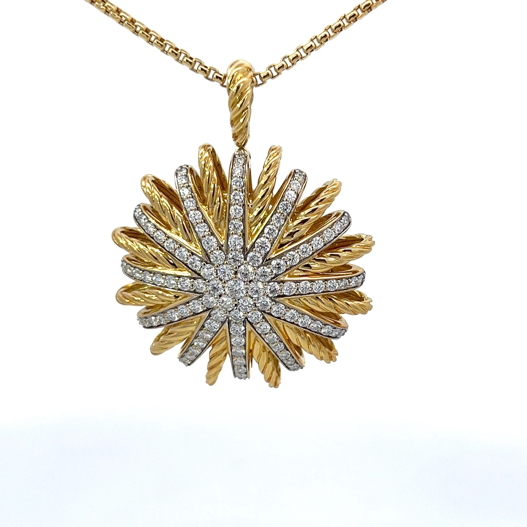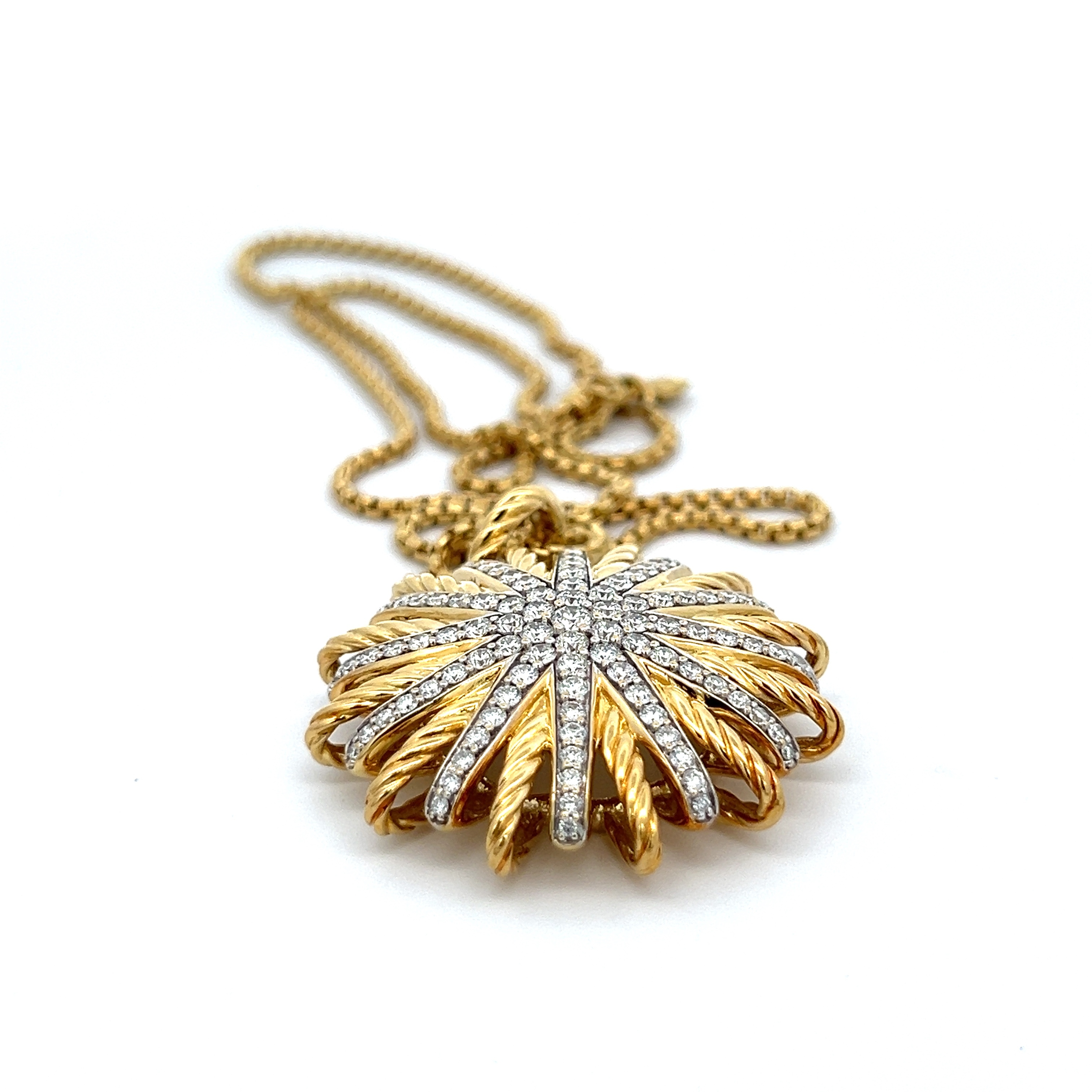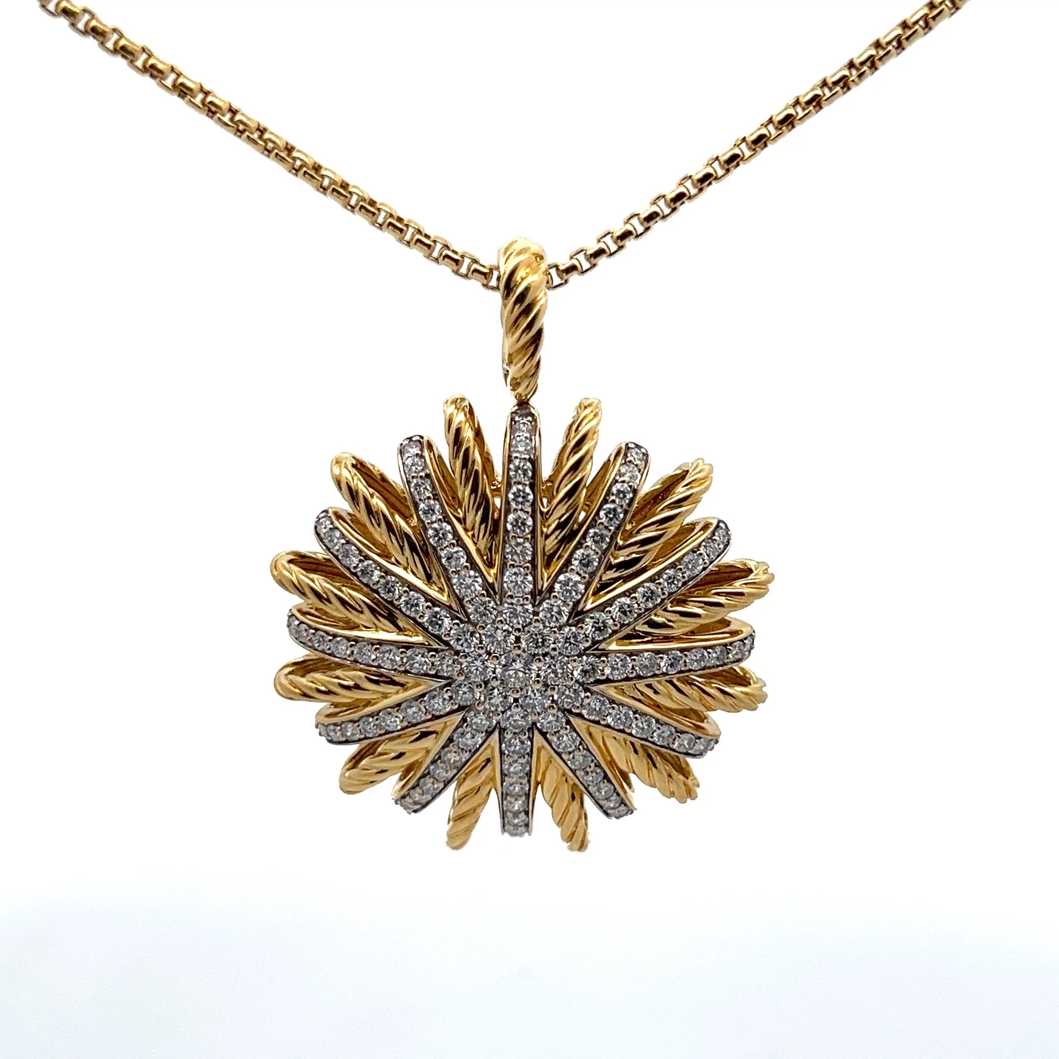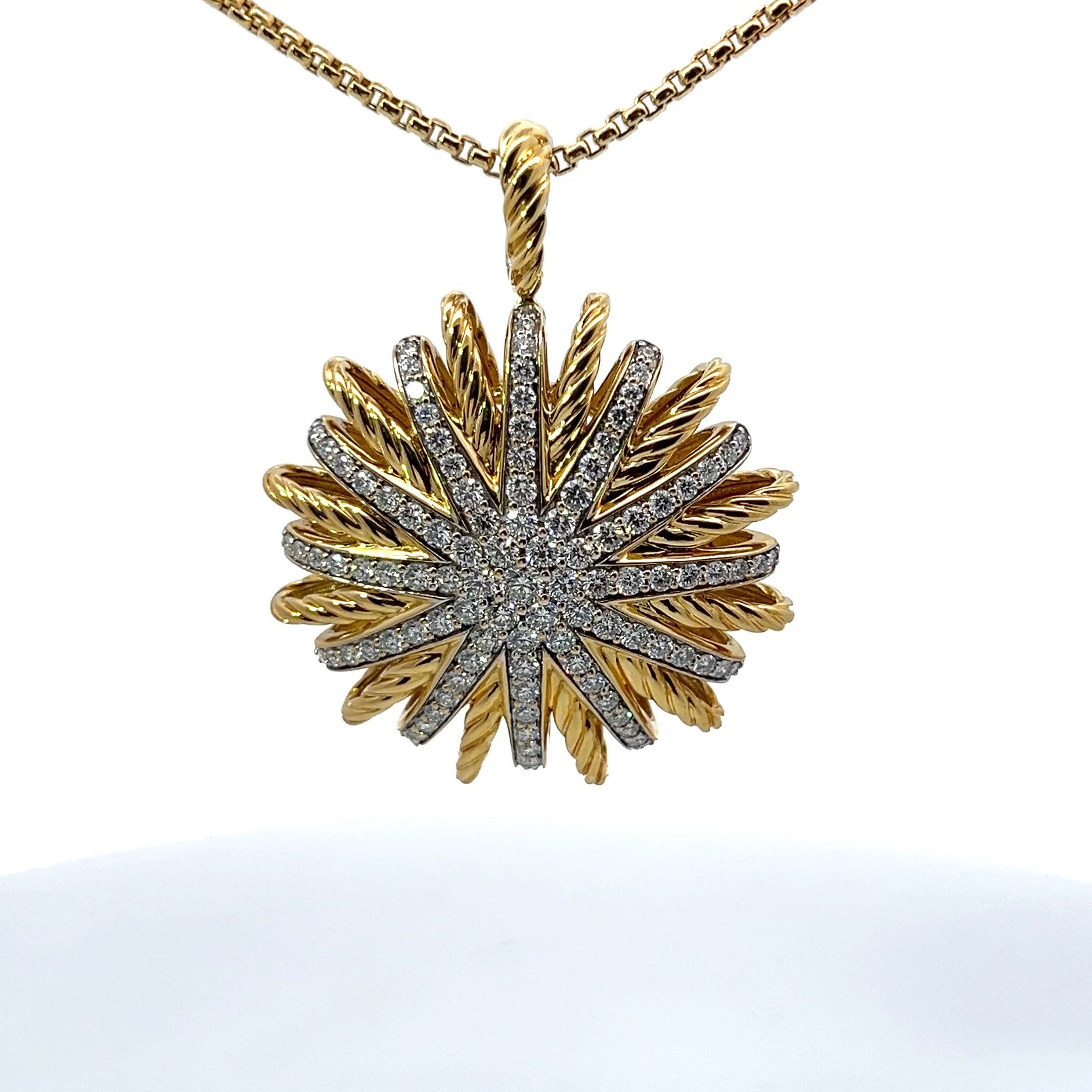 This authentic 18K yellow gold sun diamond pendant necklace is brand new with original packaging and has never been worn. The radiant sun motif and genuine diamond accent make this a stunning and meaningful jewelry gift for her.